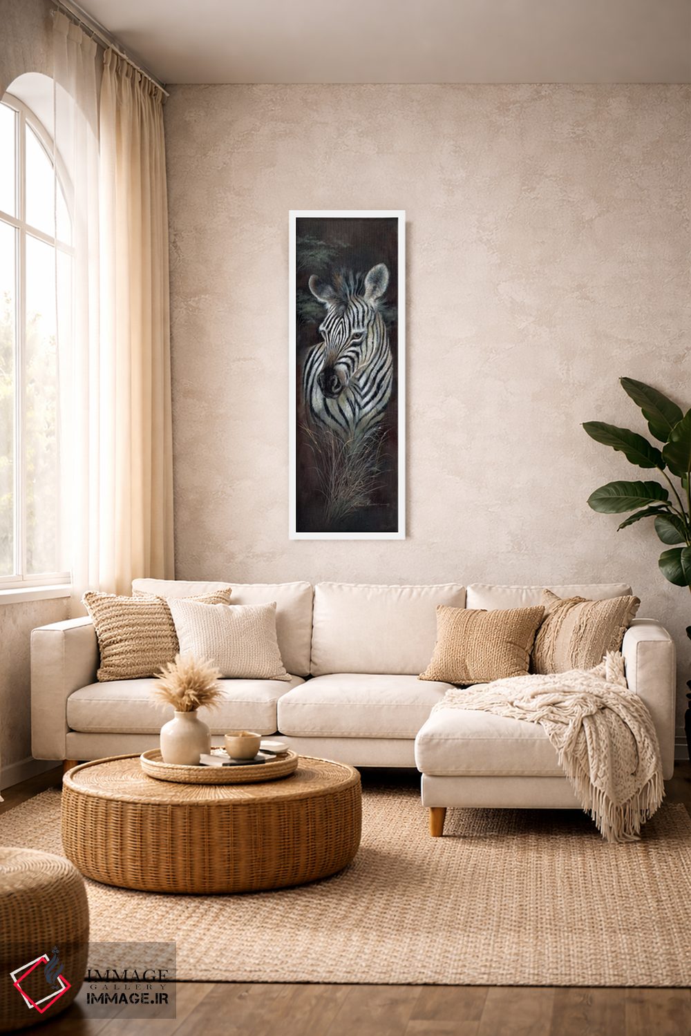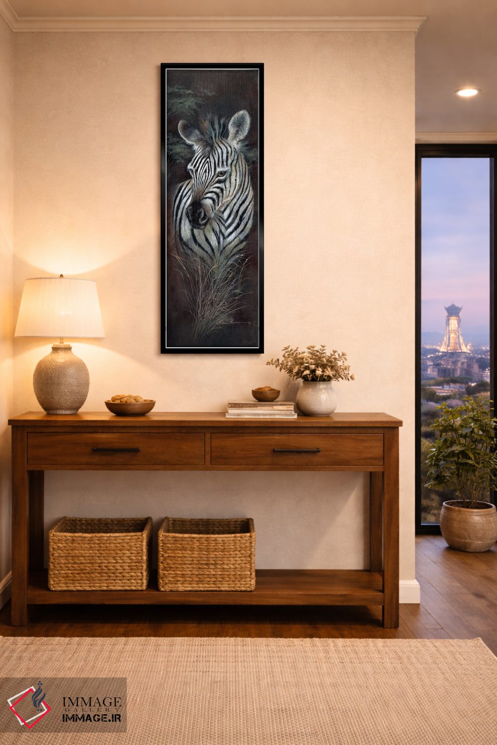 براساس پالت گرم اثر، قاب تیک گرم (چوبی) پیشنهاد اول است و مشکی مات (فریم متوسط) مکمل. برای سفارشهای پروژهای با ابعاد و قابهای اختصاصی با ایماژ در تماس باشید.
