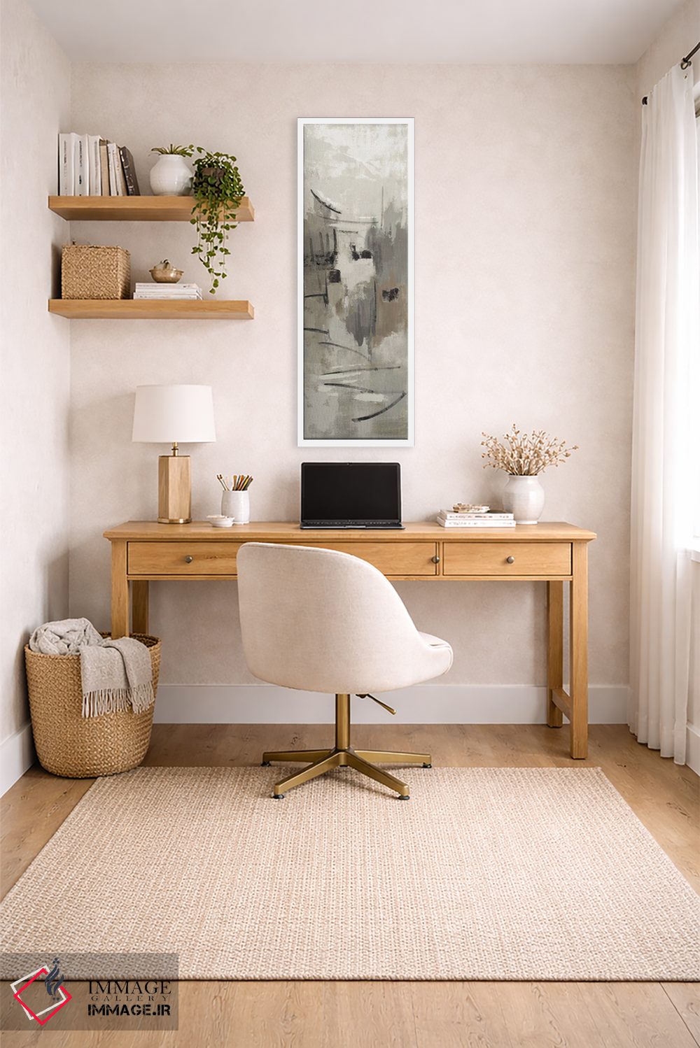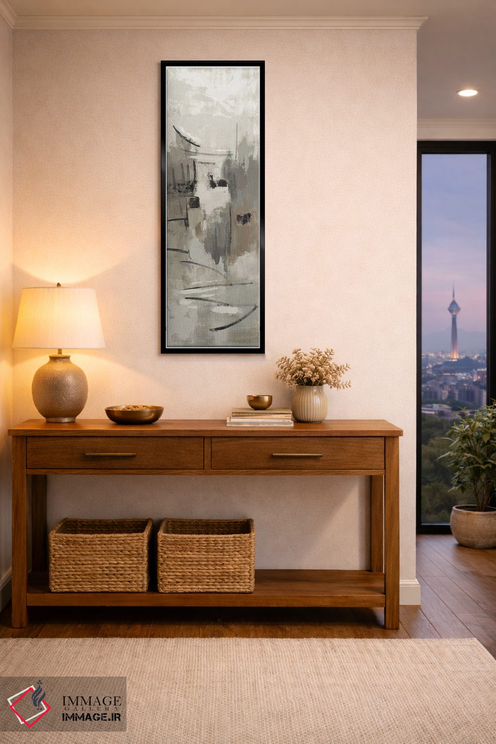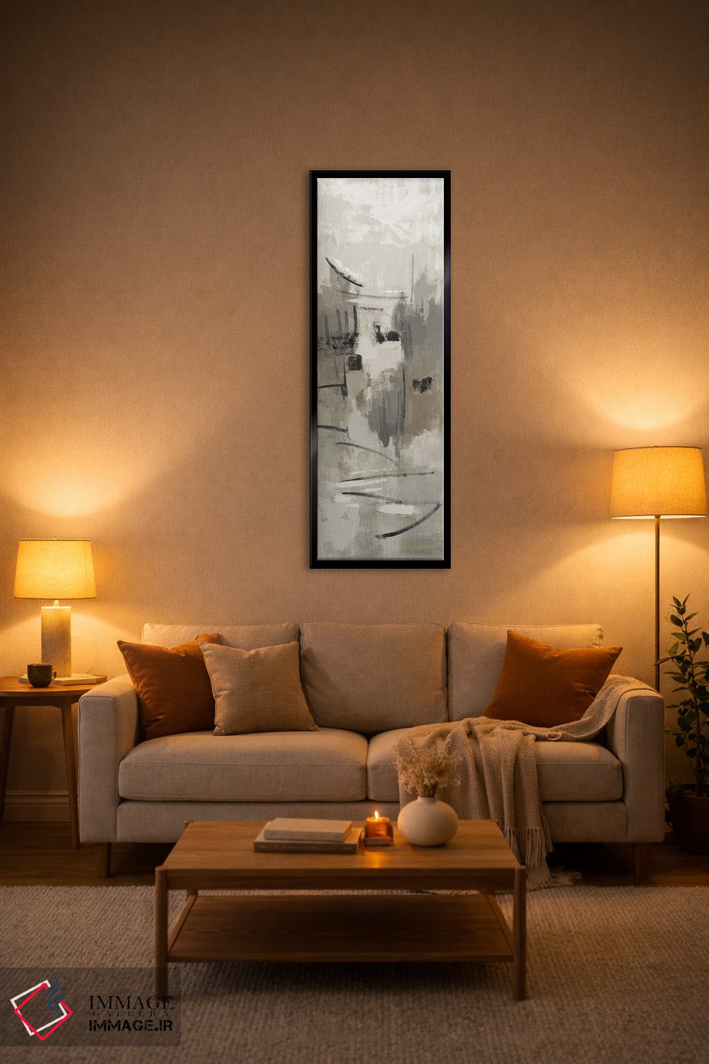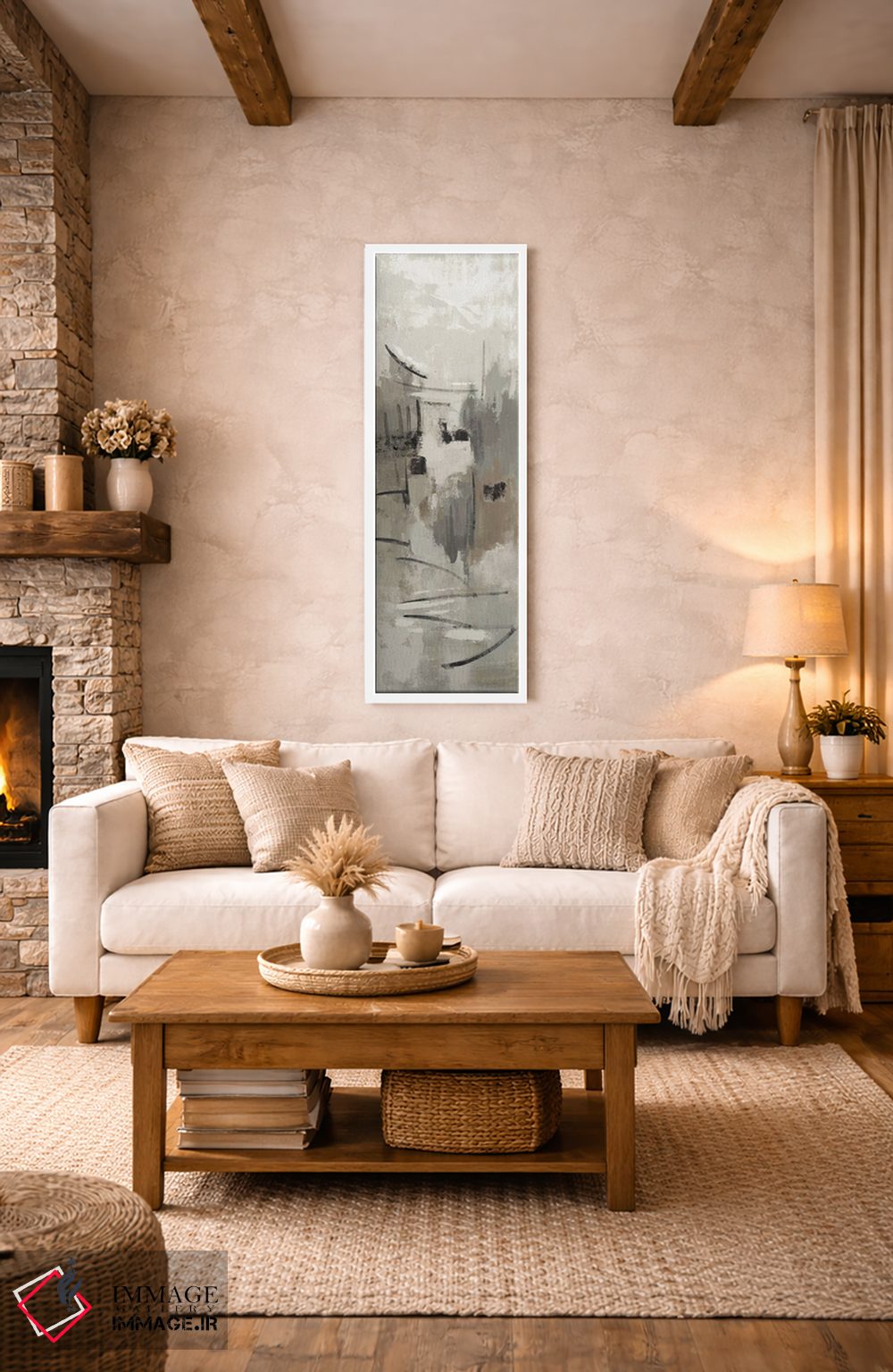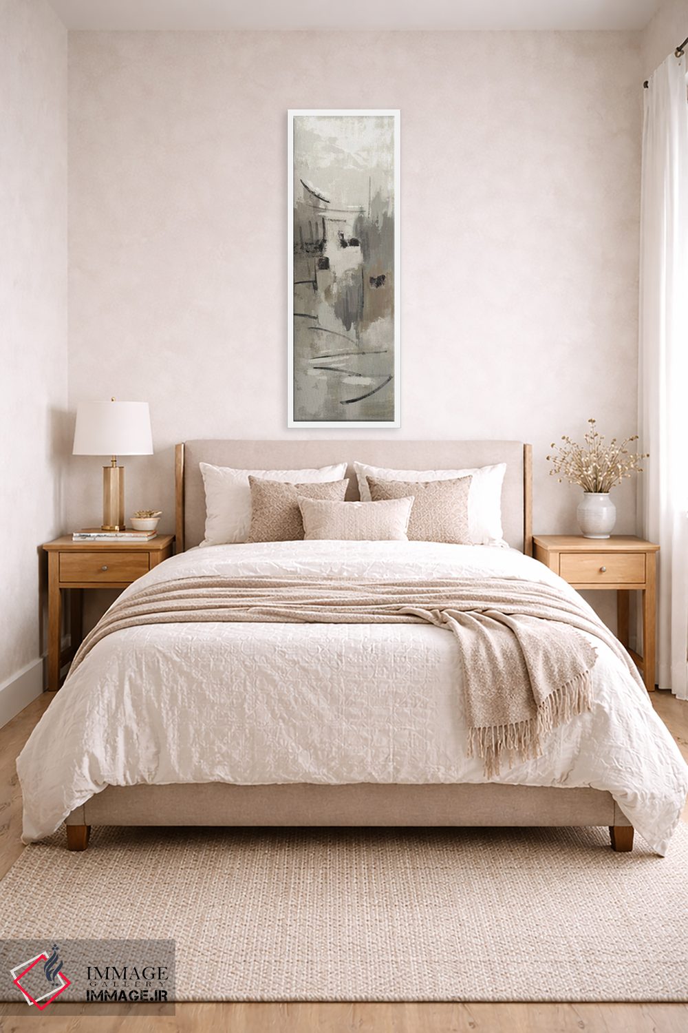 براساس پالت خنثی اثر، قاب بلوط روشن (چوبی) پیشنهاد اول است و استخوانی ملایم مکمل. برای سفارشهای پروژهای با ابعاد و قابهای اختصاصی با ایماژ در تماس باشید.