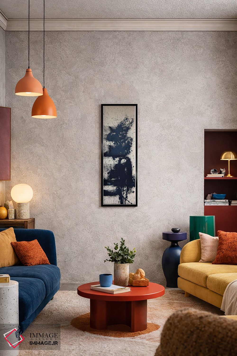 اگر دوست دارید هماهنگی کاملتر شود، رنگِ آبی را در فرش یا پرده (بهصورت خیلی کم) برگردانید تا رنگها در فضا نفس بکشند. اکسنت را کم و دقیق نگه دارید.