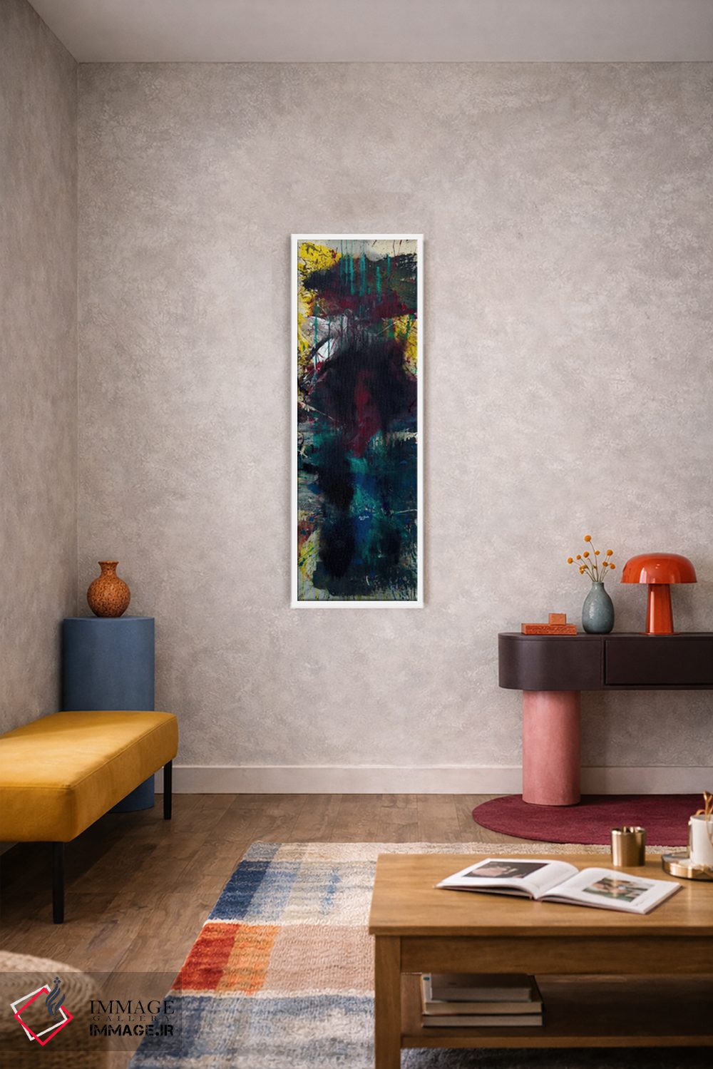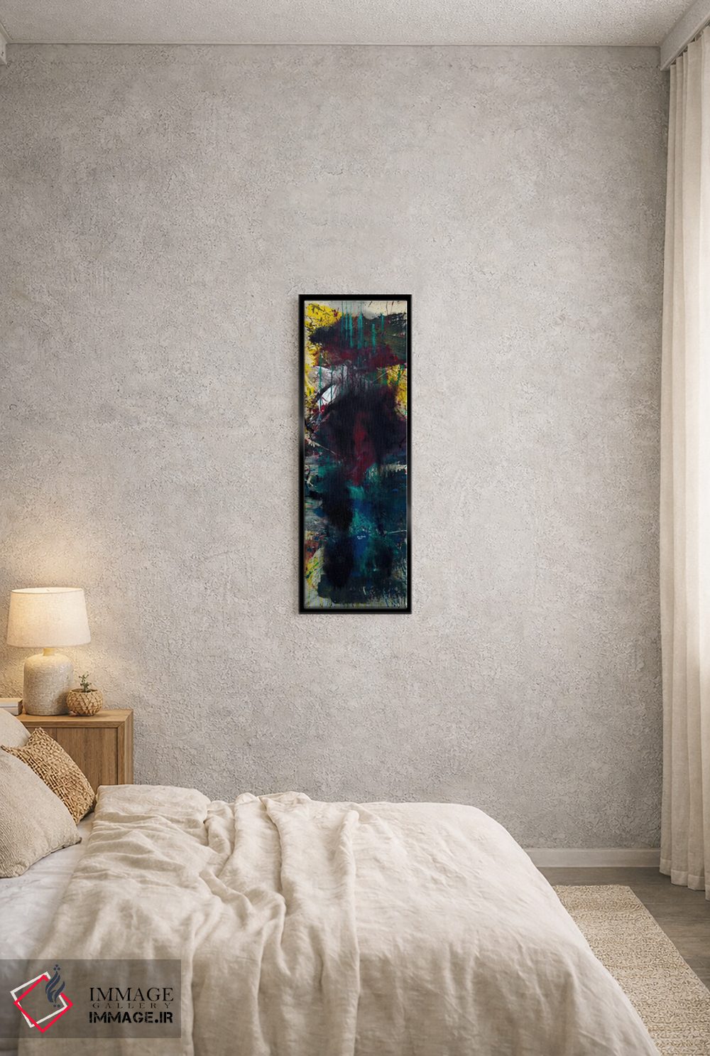 براساس پالت ترکیبی اثر، قاب تیک گرم (چوبی) پیشنهاد اول است و مشکی مات (فریم متوسط) مکمل. برای سفارشهای پروژهای با ابعاد و قابهای اختصاصی با ایماژ در تماس باشید.