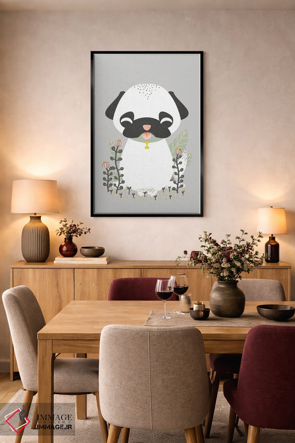 براساس پالت خنثی اثر، قاب مشکی مات (فریم باریک) پیشنهاد اول است و سفید مات (فریم باریک) مکمل. برای سفارشهای پروژهای با ابعاد و قابهای اختصاصی با ایماژ در تماس باشید.