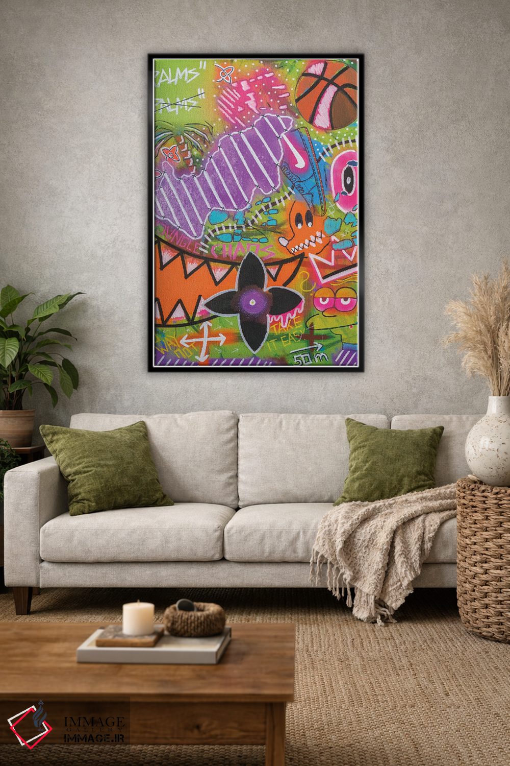 بوم گالری ایماژ نسخهی چیدماناتیوِ حرفهای از یک اثر هنری است؛ روی کنواس بدون اسید با بافت ظریف و یکنواخت با فرآیند چاپ حرفهای جیکلی (Giclée) و کنترل دقیق تونها با جوهرهای آرشیویِ حرفهای برای لایههای رنگی خواناتر، در گذارهای رنگی، لطافت بیشتری حس میشود. کلافکشی مرتب و یراق نصب استاندارد، تجربهی نصب را ساده میکند.