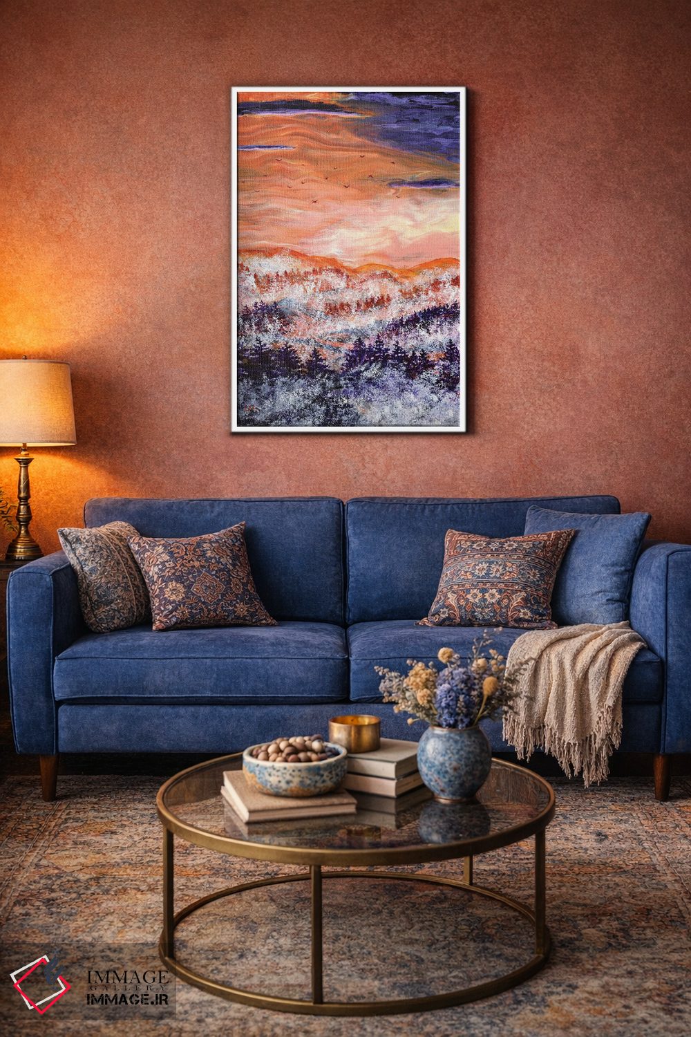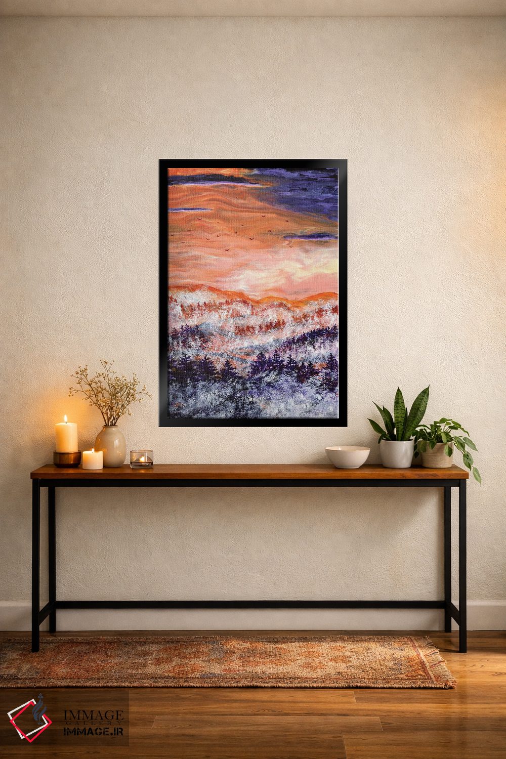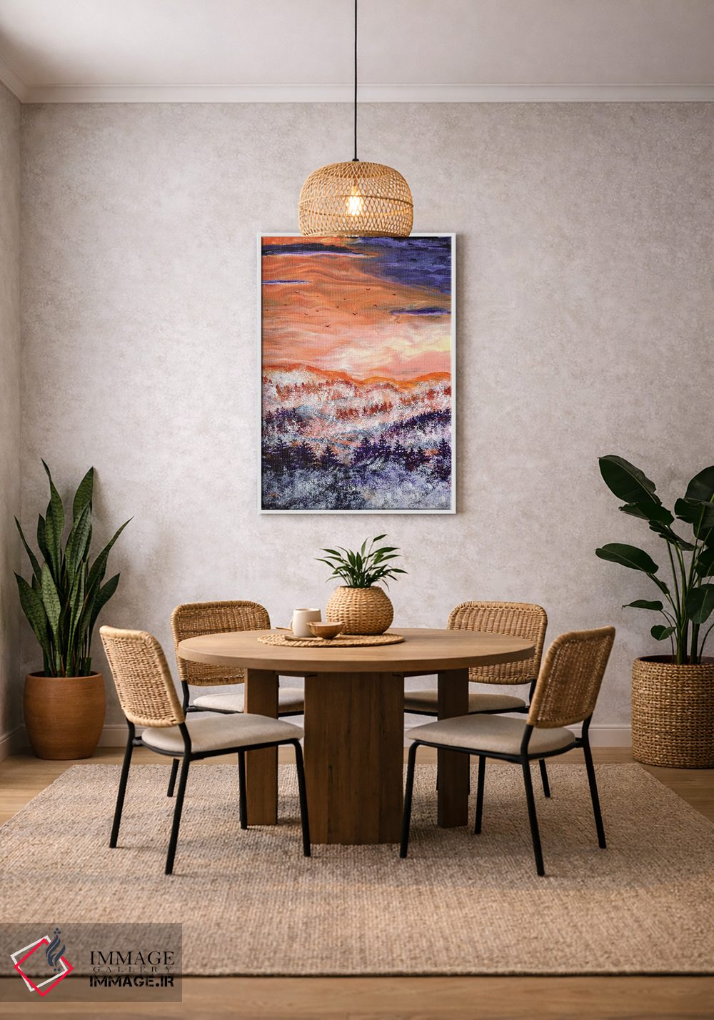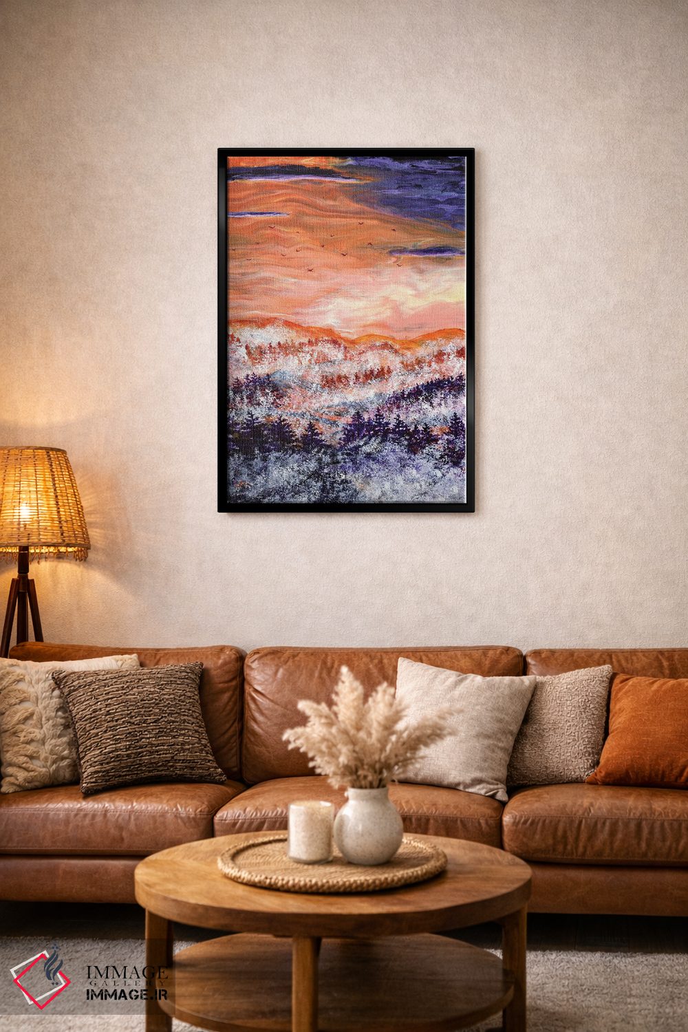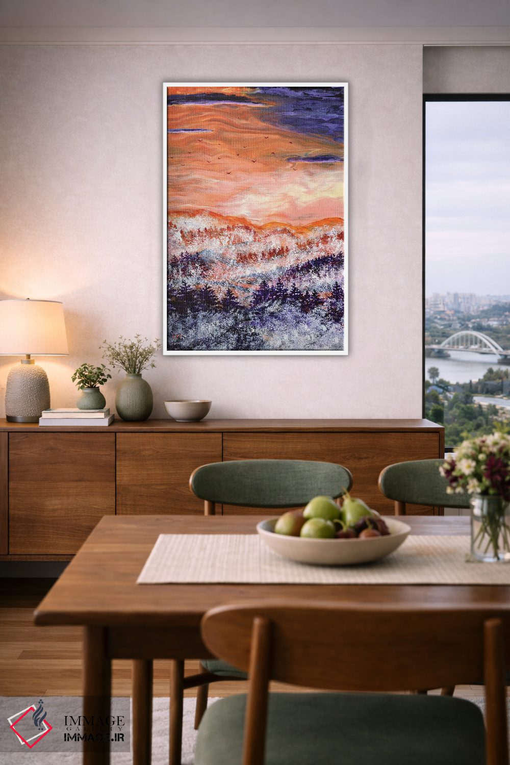 براساس پالت ترکیبی اثر، قاب تیک گرم (چوبی) پیشنهاد اول است و مشکی مات (فریم متوسط) مکمل. برای سفارشهای پروژهای با ابعاد و قابهای اختصاصی با ایماژ در تماس باشید.