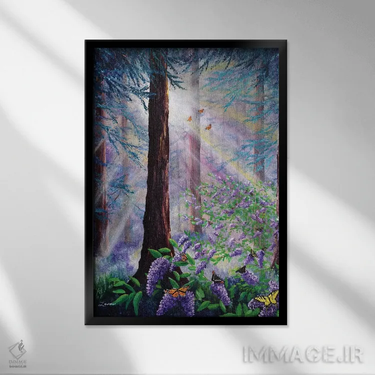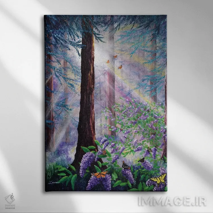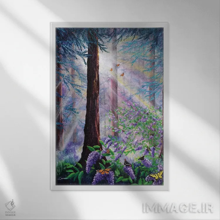 تابلو دکوراتیو بیشه پروانه ها در جنگل سرخ چوب اثر لورا ایورسن