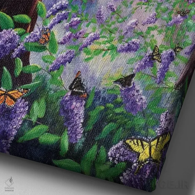 تابلو دکوراتیو بیشه پروانه ها در جنگل سرخ چوب اثر لورا ایورسن - نمای نزدیک بافت بوم