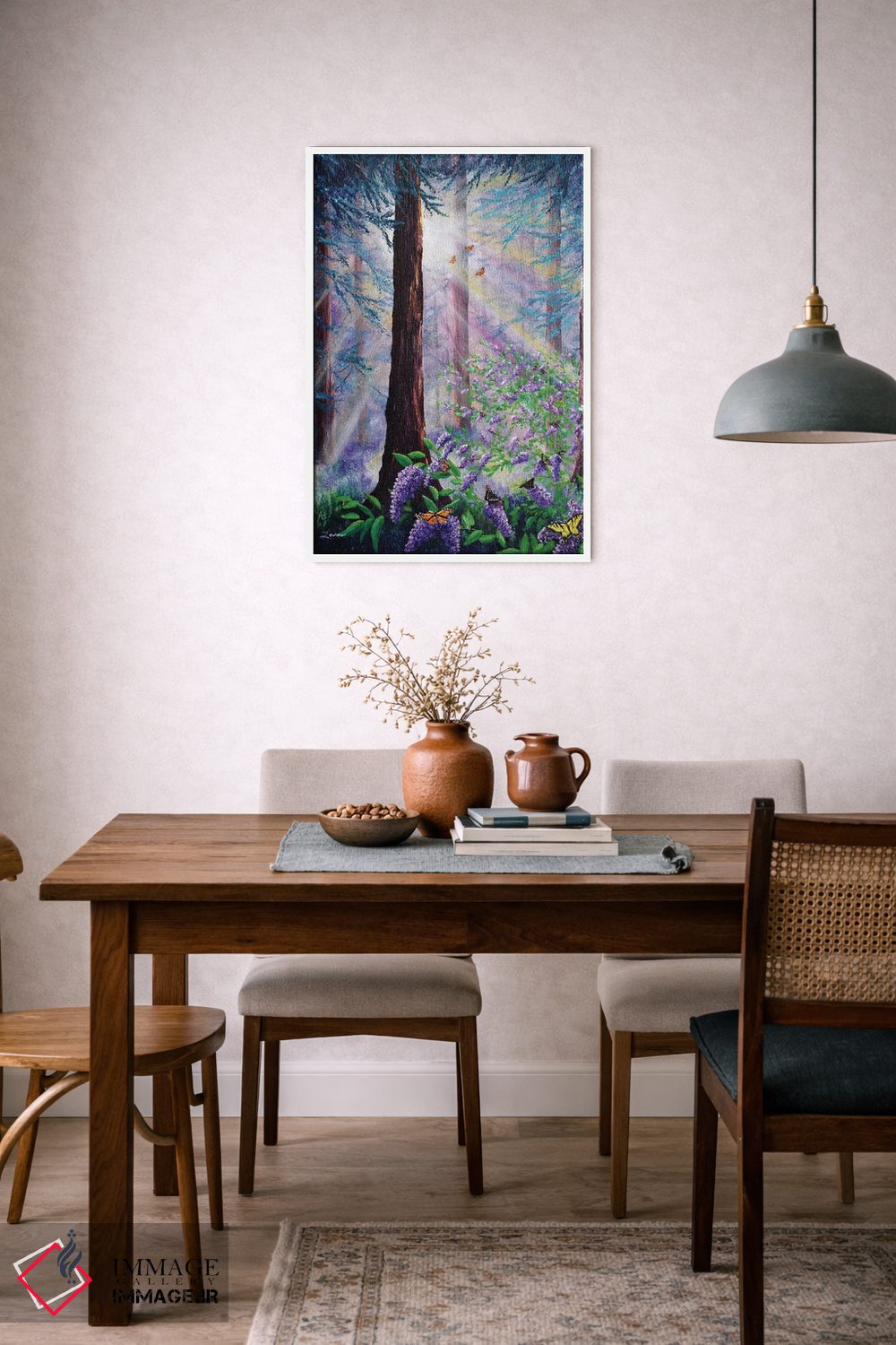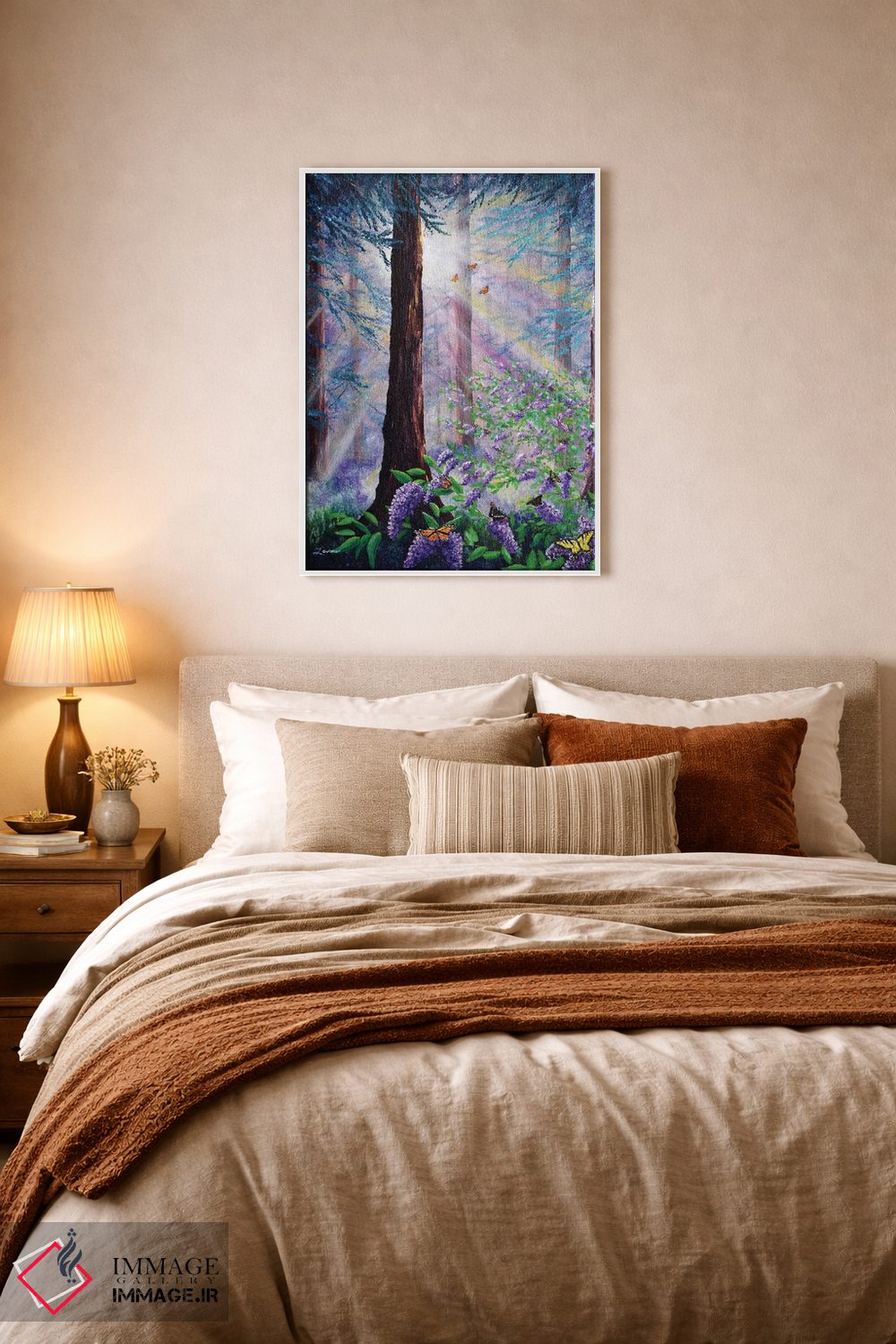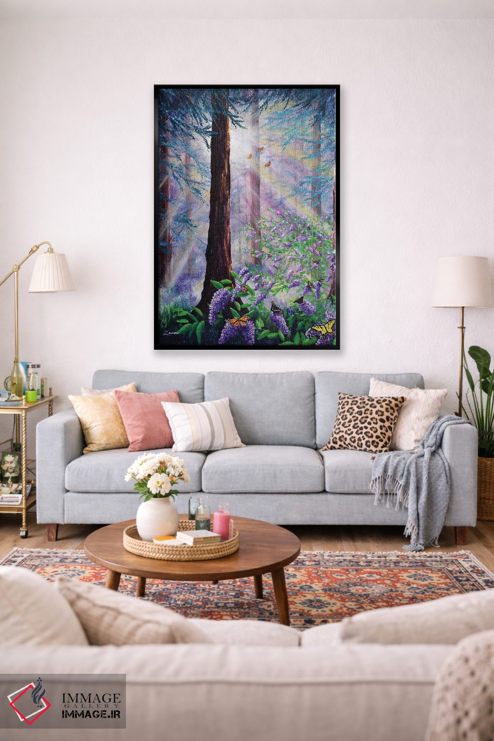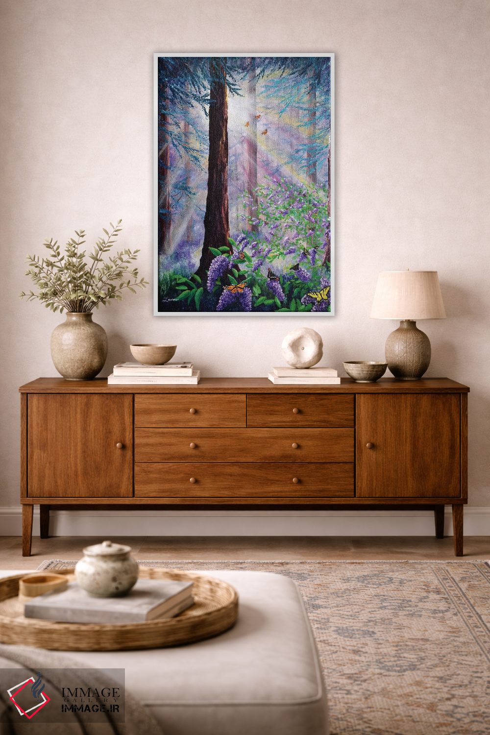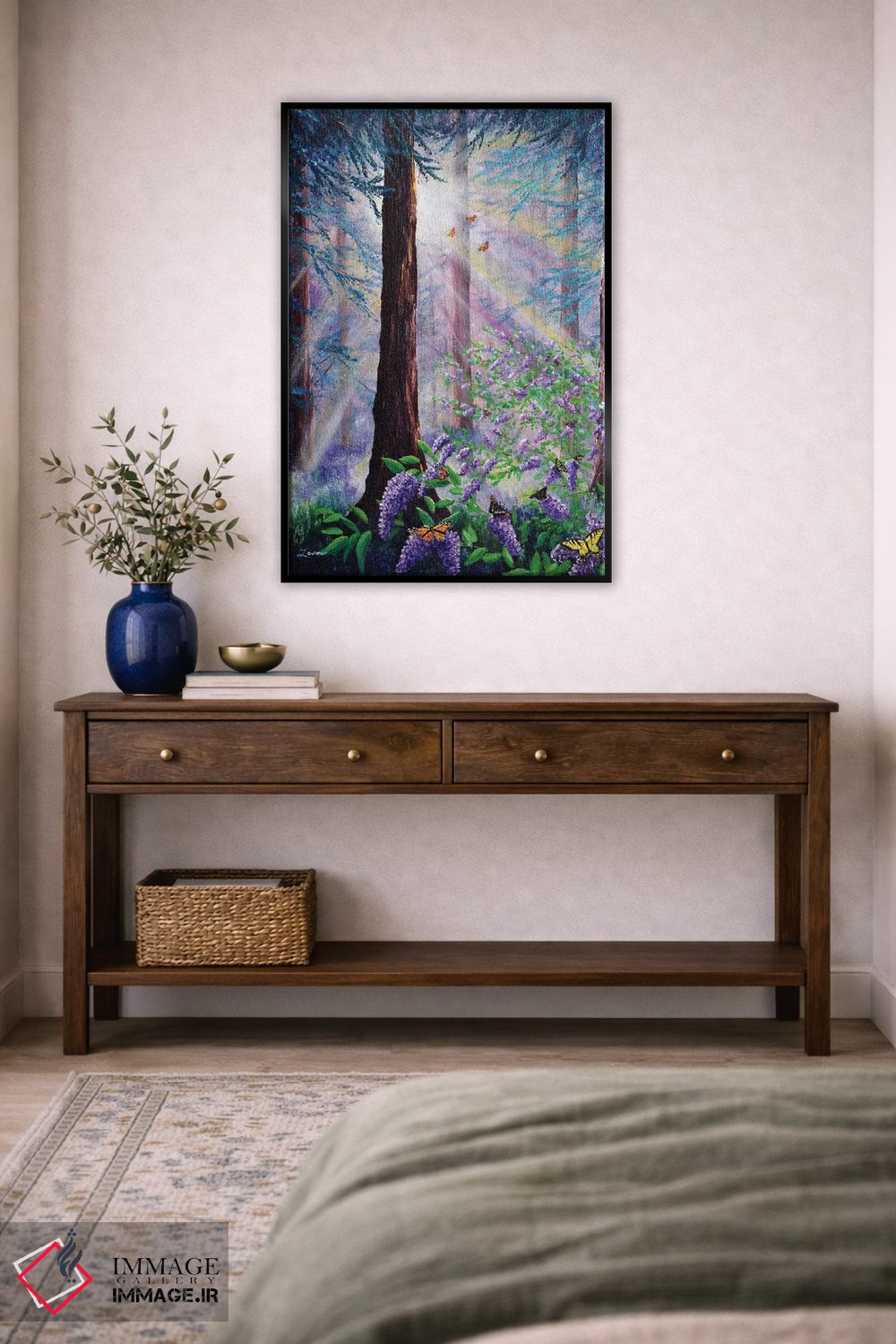 تابلو دکوراتیو بیشه پروانه ها در جنگل سرخ چوب اثر لورا ایورسن - نمای پرسپکتیو محصول