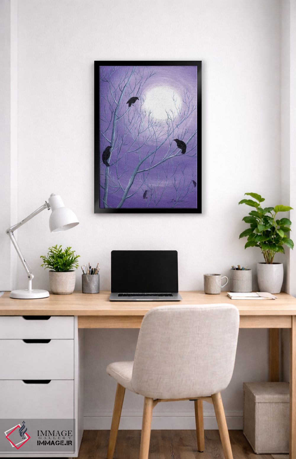 تابلو دکوراتیو کلاغ ها روی شاخه های خالی اثر لورا ایورسن