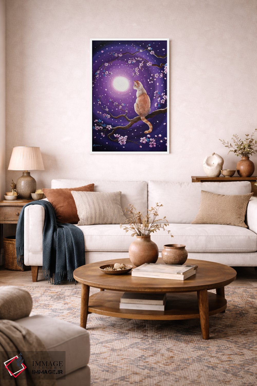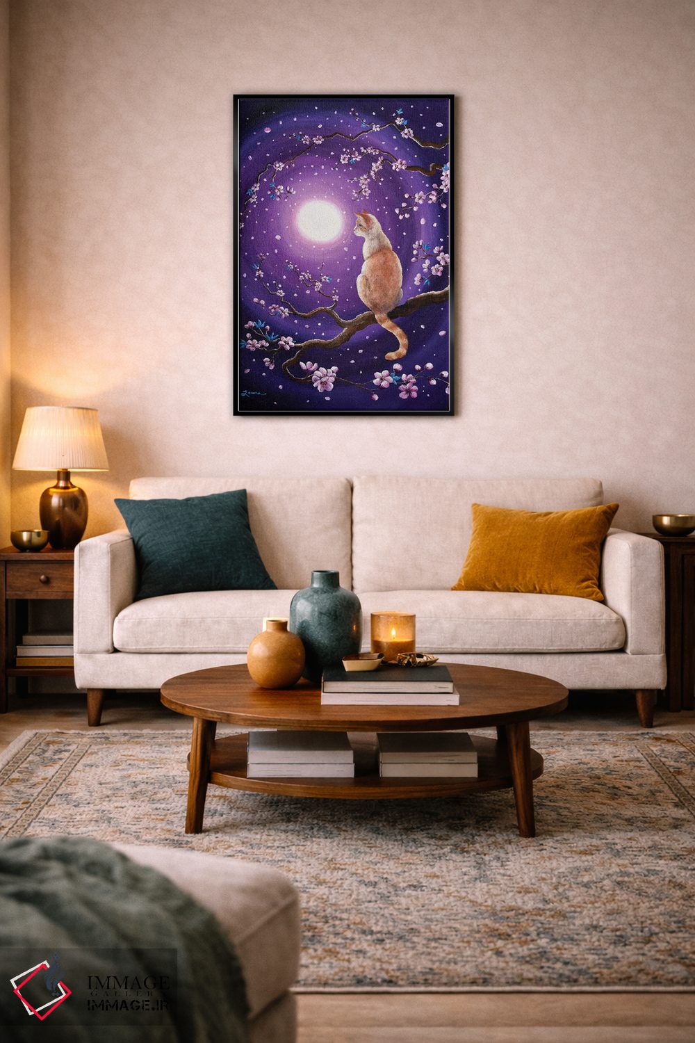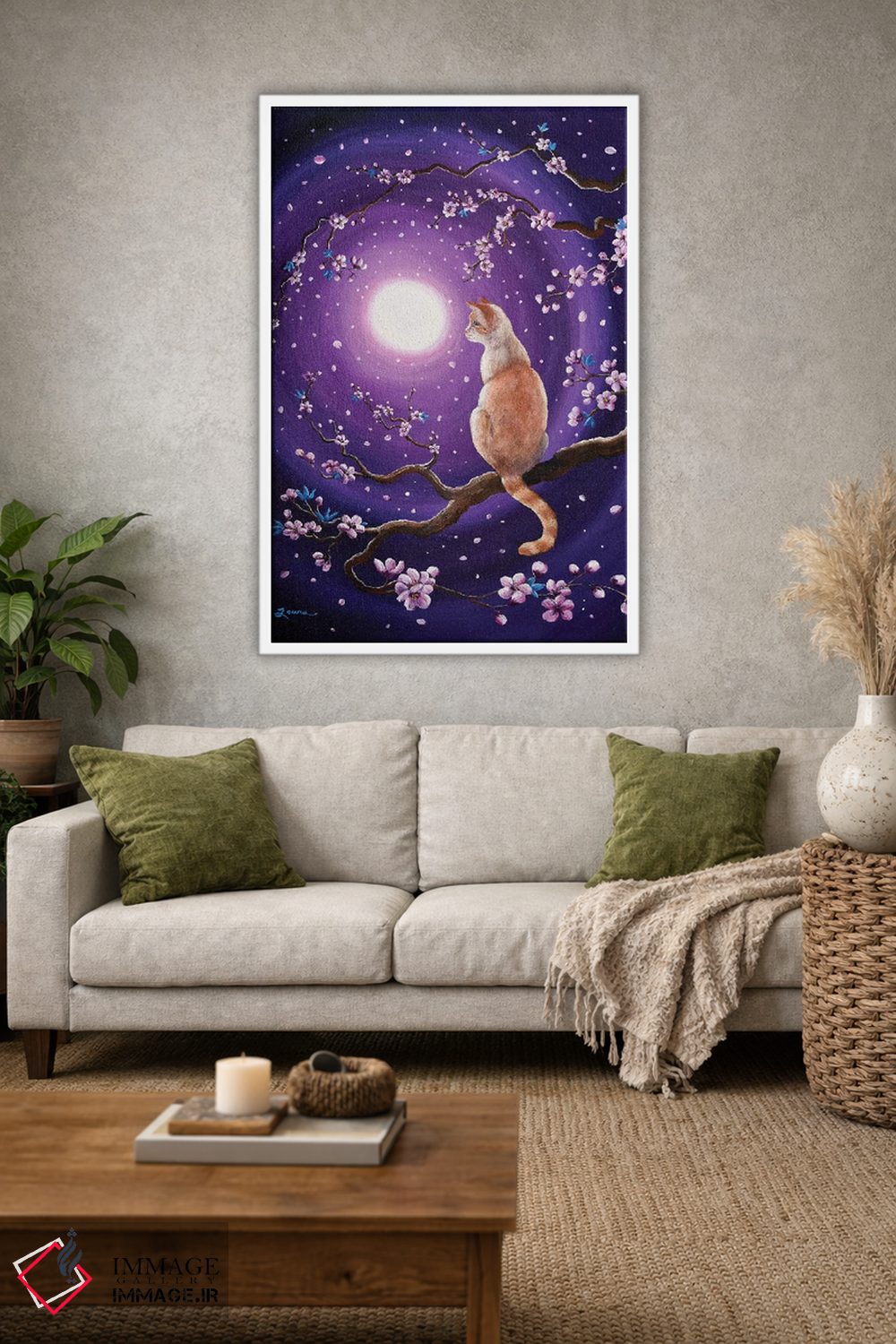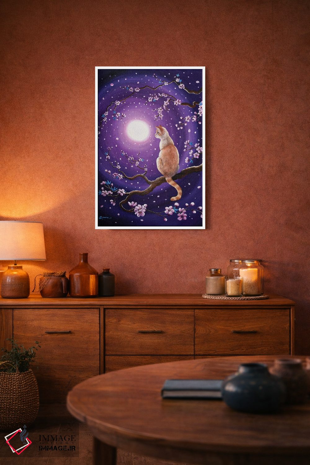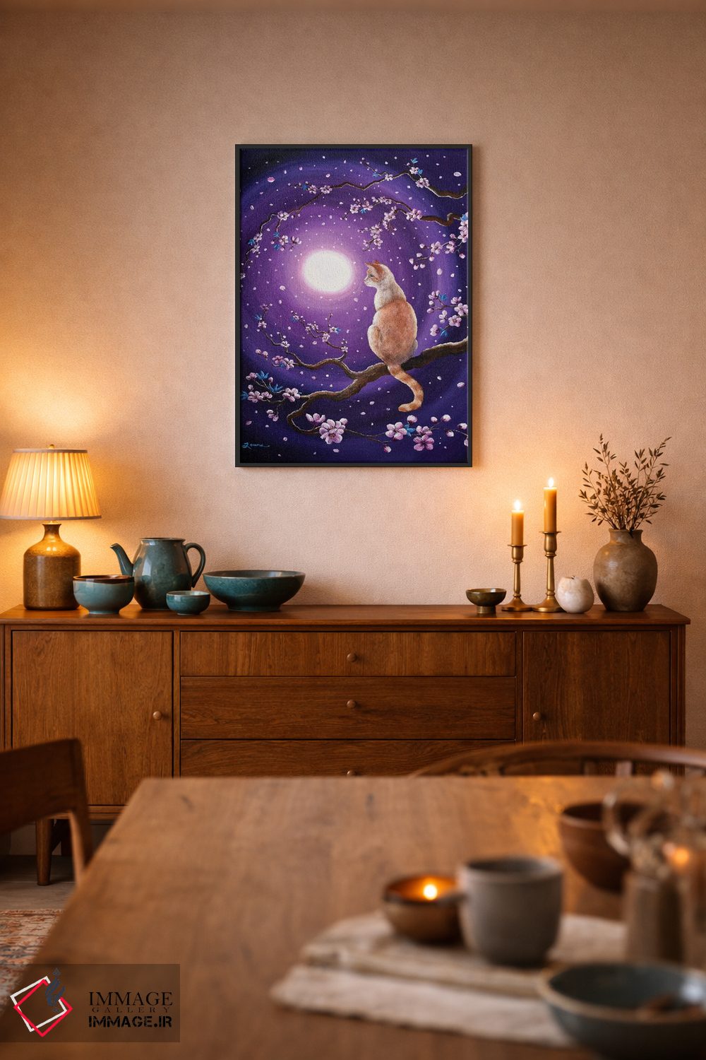 این اثر با عنوان «گربه سیامی فلیمپوینت در شکوفههای رقصان گیلاس» اثرِ «لورا ایورسن» برای دکورهای مینیمال، یک نقطهٔ توجه میسازد؛ برای اتاق کودک (بدون لحن کودکانه) انتخابی خوشسلیقه است. در کنار گیاهان و نور طبیعی، جذابتر هم میشود.