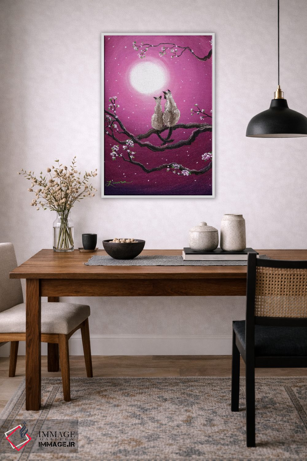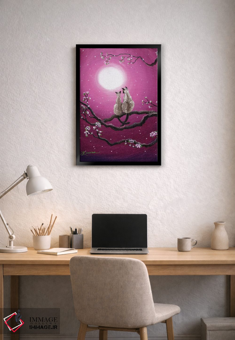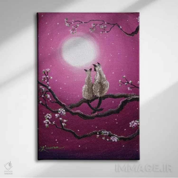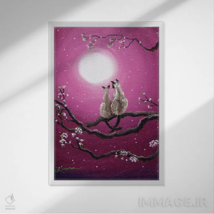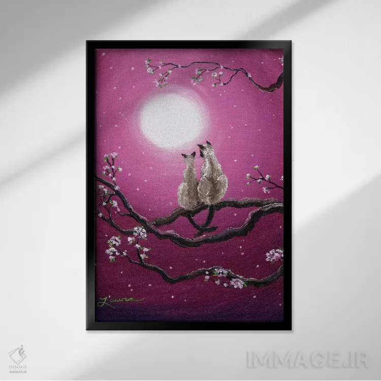 تابلو دکوراتیو گربه های سیامی در شکوفه های بهاری اثر لورا ایورسن