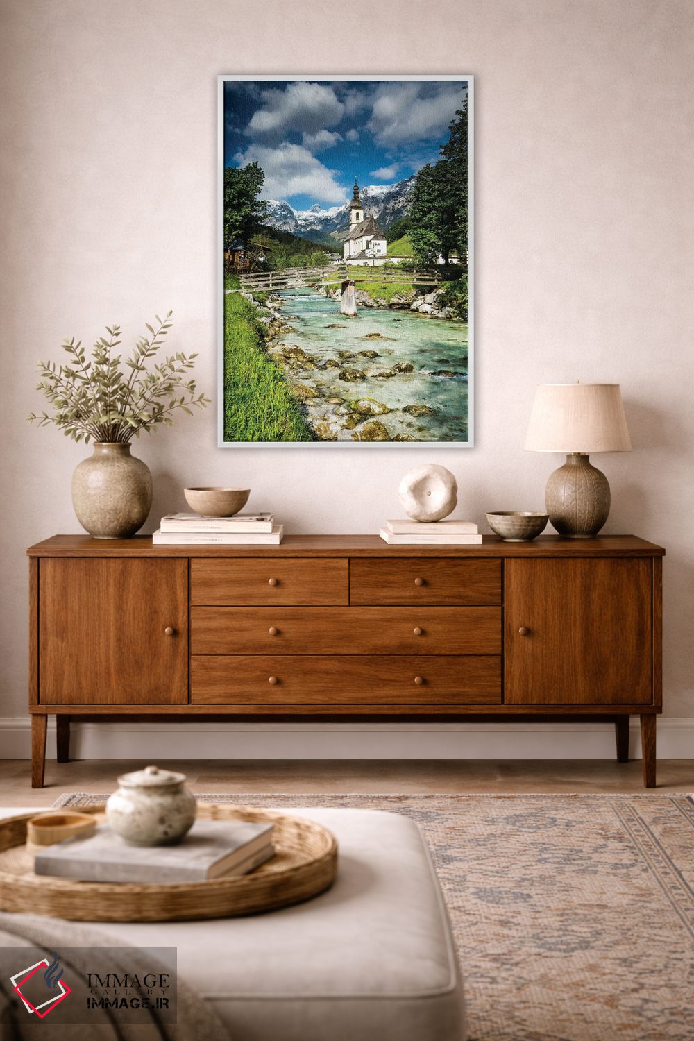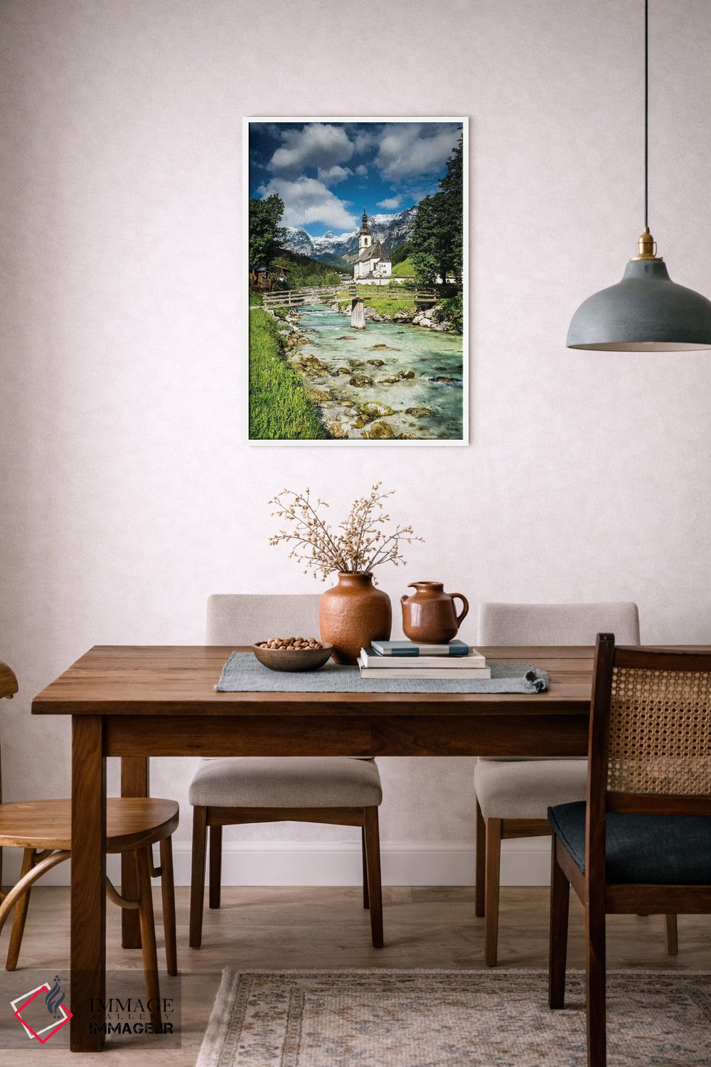 برای فضایی که میخواهید مرتبتر و حرفهایتر دیده شود، «آلمان، آلپ، باواریا، رامزاو در نزدیکی برشتسگادن» اثرِ «میکولاج گوسپودرک» به چیدمان، عمق و وقار میدهد؛ برای اتاق کار و گوشهٔ مطالعه پیشنهاد میشود. حضورش روی دیوار «مرتب» است؛ نه پر سر و صدا، نه بیاثر.