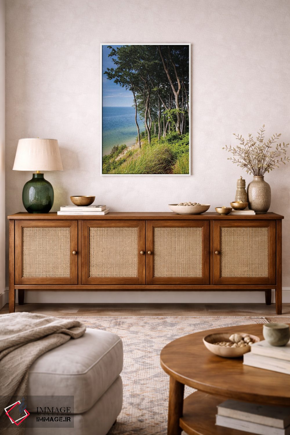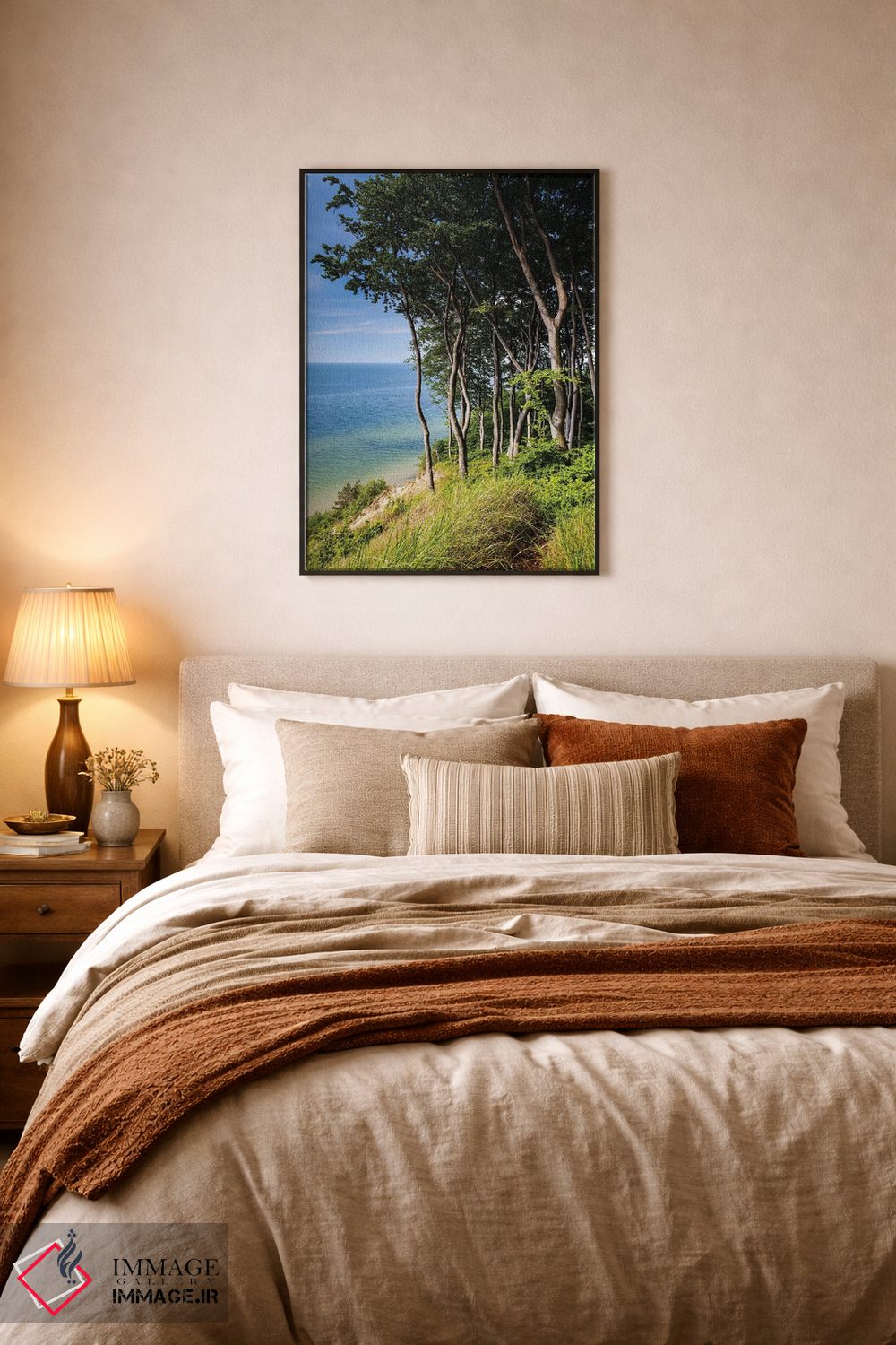 ساختار بوم گالری ایماژ طوری است که اثر روی دیوار «پرداختشده» و حرفهای دیده شود—نه پرزرقوبرقِ بیپایه؛ بلکه دقیق و خوشپرداخت. با بافت ظریف کنواس، حس اثر هنری را در نگاه نزدیک نگه میدارد و برای محیطهای رسمیتر هم انتخاب مطمئنی است. رنگهای آرشیوی Epson UltraChrome HDR کمک میکند در سایهها جزئیات بیشتری حفظ میشود بهخصوص وقتی نور موضعی ملایم داشته باشید. حاصل کار، یک تابلو خوشنشین است که هم از دور اثرگذار است و هم از نزدیک خوشخوان؛ و اگر بخواهید، میتوان چیدمان را برای گالریوال هم پیشنهاد داد. اگر یک اکسنت رنگی کوچک در اکسسوریها تکرار شود، هماهنگی فضا کاملتر میشود.