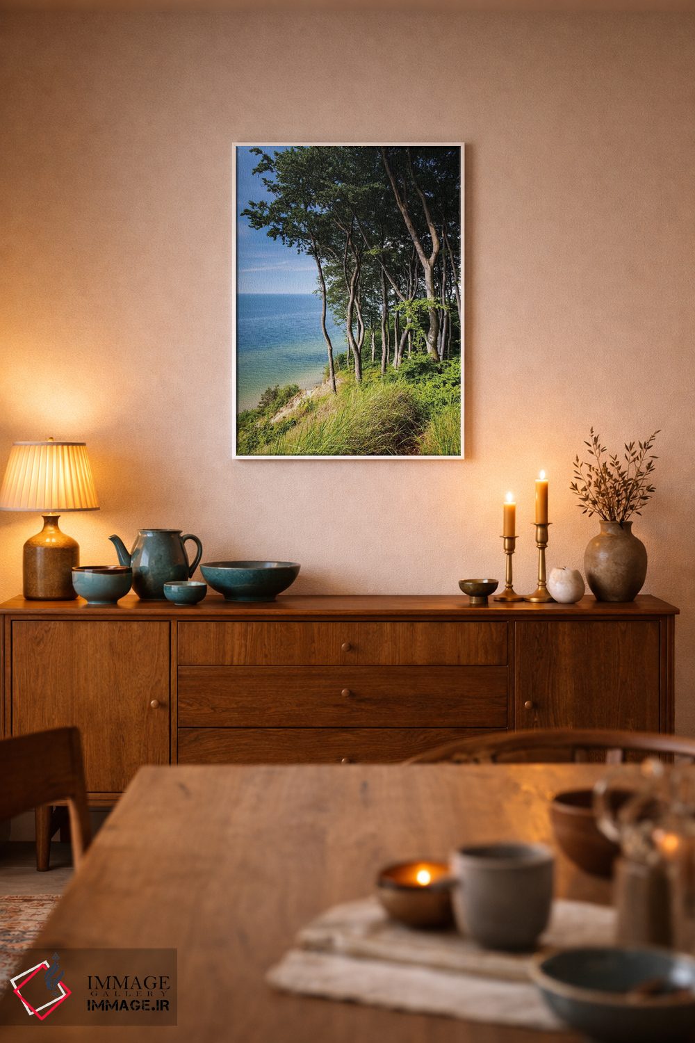 وقتی چیدمان را با دقت میچینید، «لهستان، دریای بالتیک XVI» اثرِ «میکولاج گوسپودرک» در کنار مبلمان، خوشنشین و هماهنگ مینشیند؛ برای دیوار بالای کنسول یا شومینه پیشنهاد میشود. جزئیاتش نزدیکِ کار هم ارزش نگاه دارد.