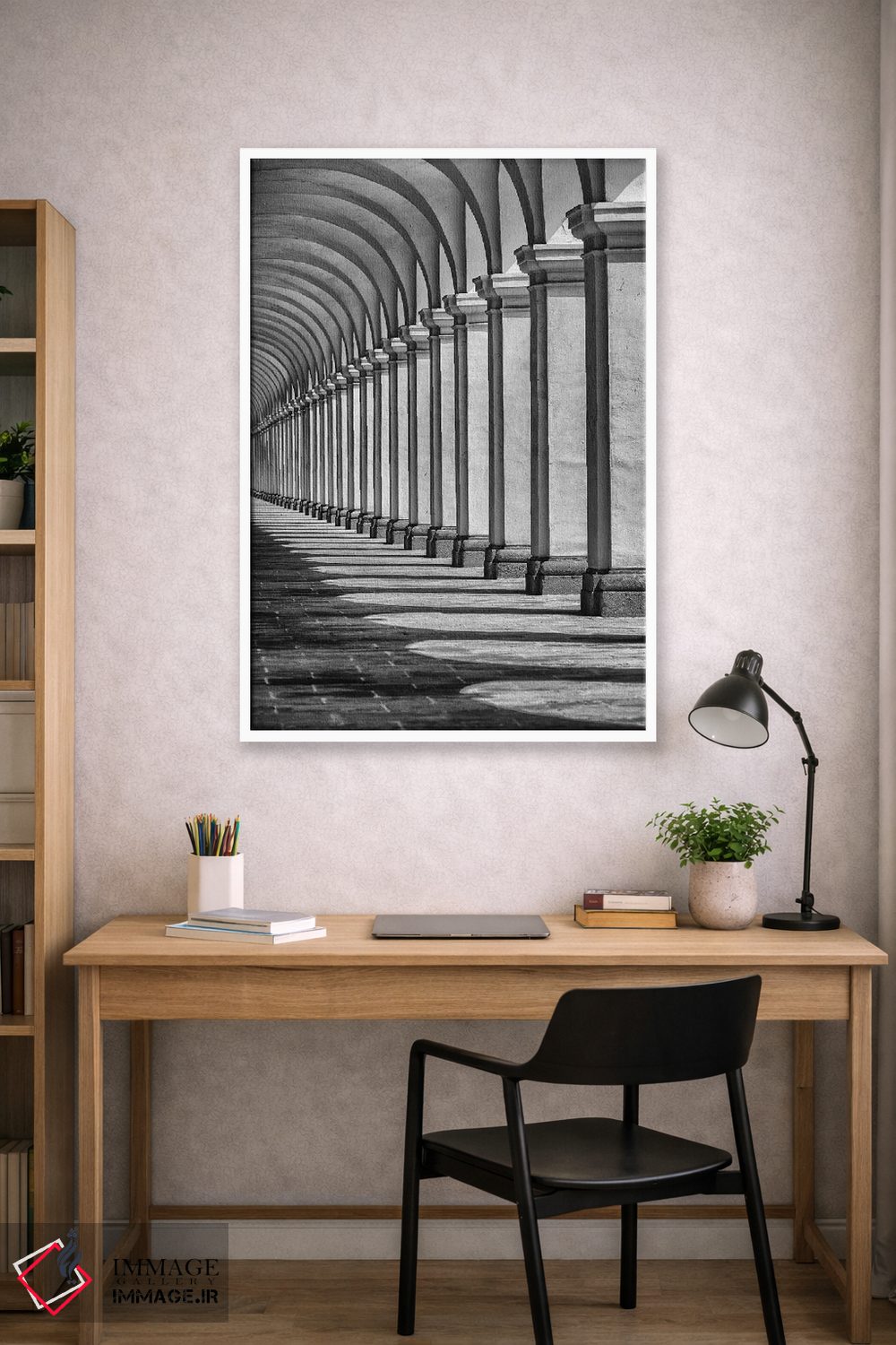 براساس پالت خنثی اثر، قاب مشکی مات (فریم باریک) پیشنهاد اول است و سفید مات (فریم باریک) مکمل. برای سفارشهای پروژهای با ابعاد و قابهای اختصاصی با ایماژ در تماس باشید.