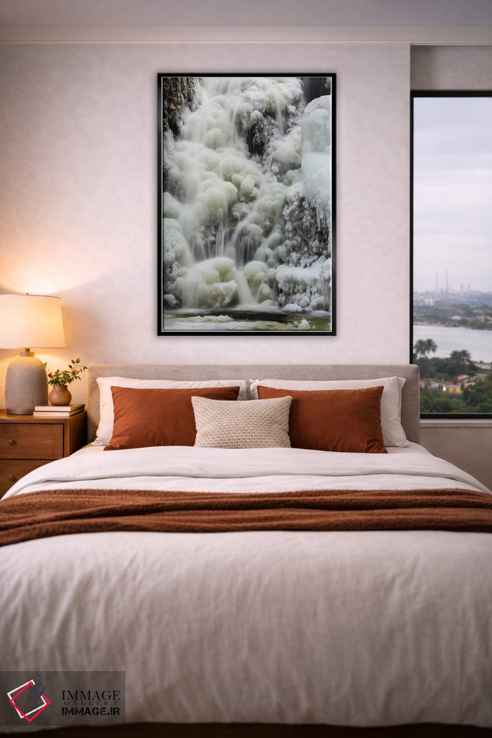 براساس پالت خنثی اثر، قاب بلوط روشن (چوبی) پیشنهاد اول است و استخوانی ملایم مکمل. برای سفارشهای پروژهای با ابعاد و قابهای اختصاصی با ایماژ در تماس باشید.