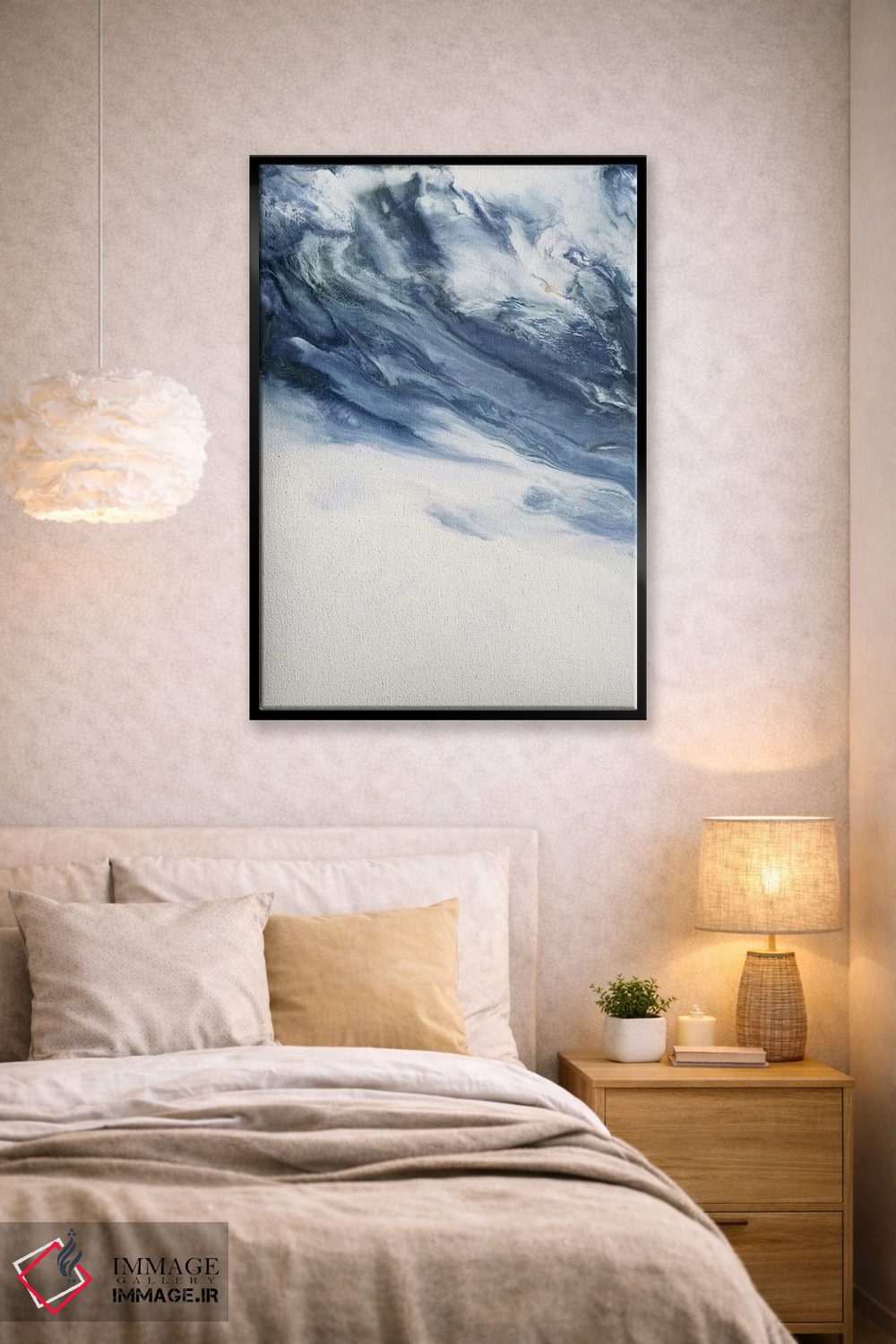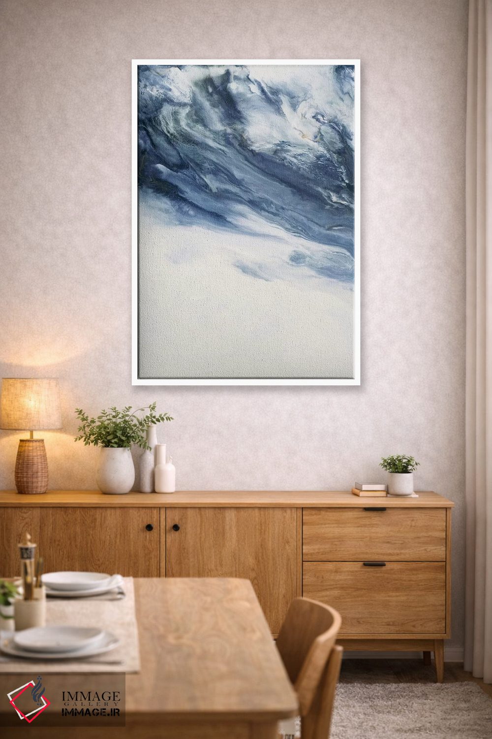 براساس پالت سرد اثر، قاب سفید مات (فریم باریک) پیشنهاد اول است و نقرهای برسخورده (متالیک) مکمل. برای سفارشهای پروژهای با ابعاد و قابهای اختصاصی با ایماژ در تماس باشید.