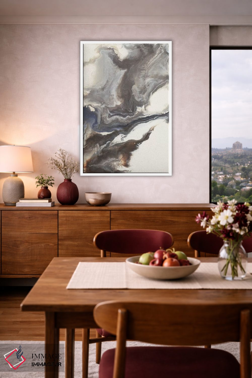 بوم گالری ایماژ طوری طراحی شده که اثر روی دیوار «پرداختشده» و حرفهای دیده شود—نه پرزرقوبرقِ بیپایه؛ بلکه دقیق و خوشپرداخت. بافت ظریف کنواس کمک میکند حس اثر هنری را در نگاه نزدیک نگه میدارد و همین «پرداخت» تفاوت را میسازد. با قابپذیری، قاب مناسب مرز بصری تمیزتری به اثر میدهد و در دکورهای مدرن و مینیمال خیلی خوب مینشیند. این کیفیت برای دکورهای دقیقتر و پروژههای حرفهای خودش را بهتر نشان میدهد؛ اگر فضا مینیمال است، همین پرداخت تمیز کافی است.