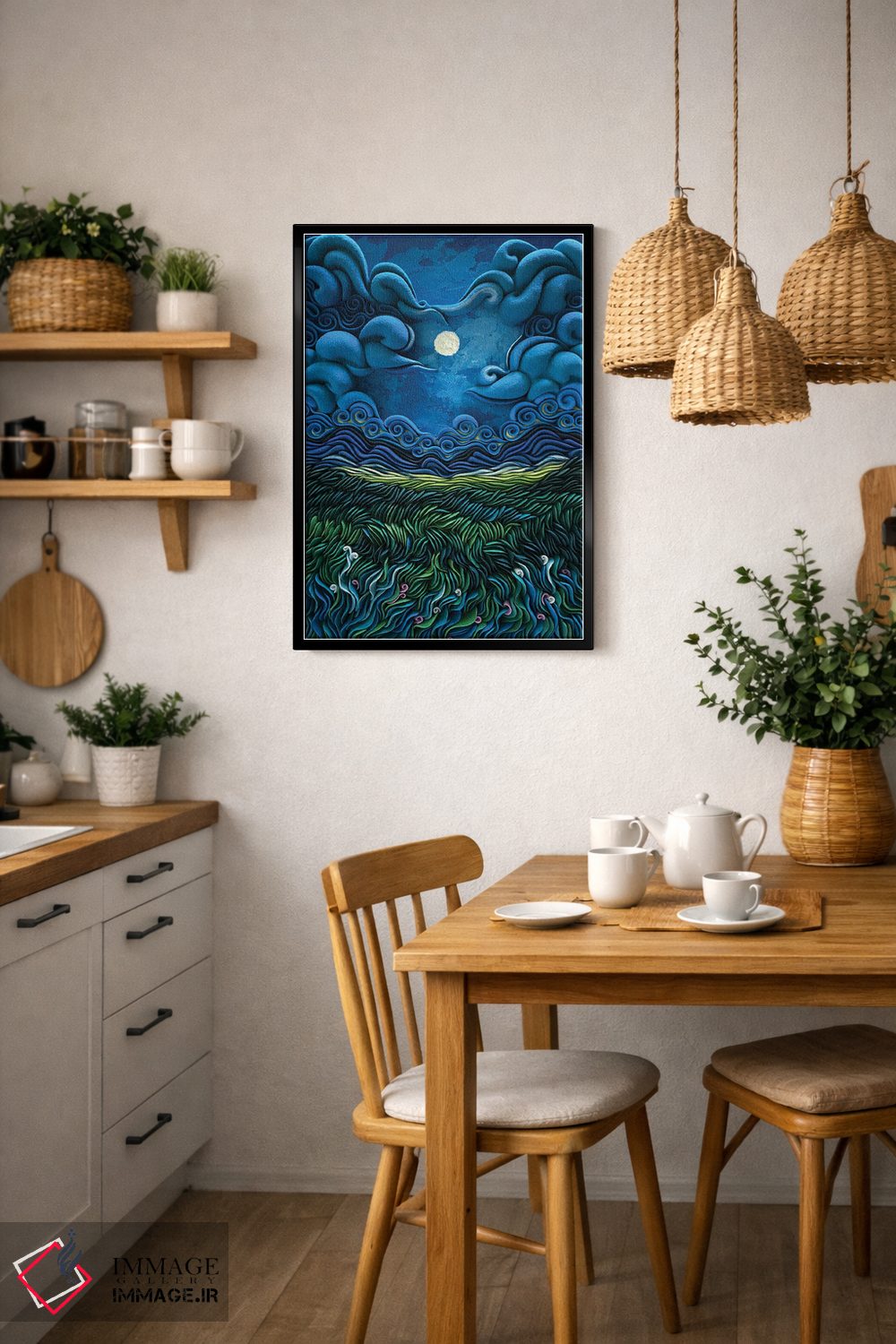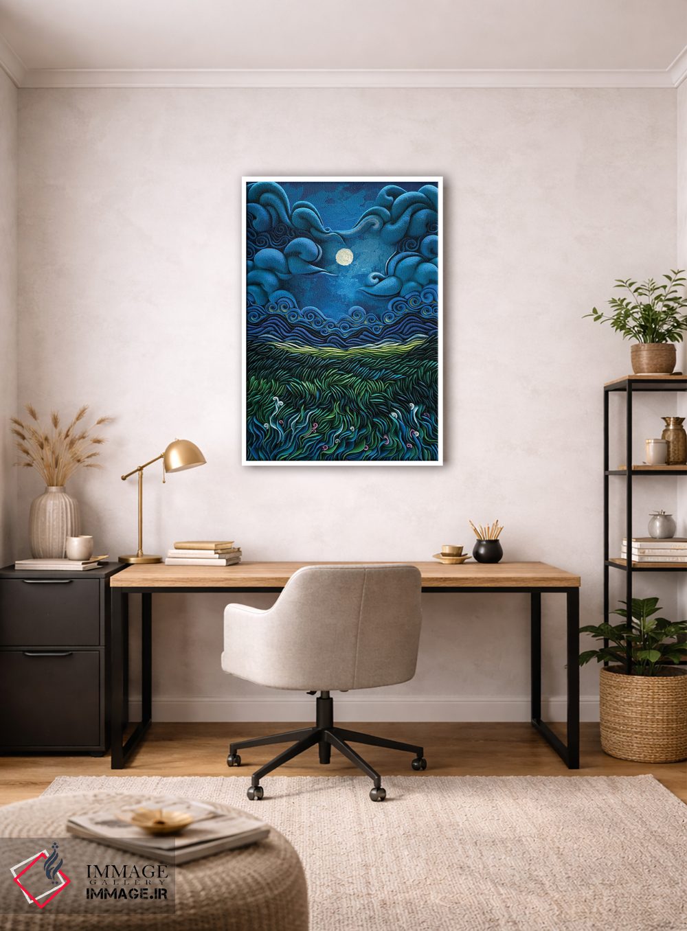 اگر میخواهید اثر در محیط «جمعوجور و کامل» دیده شود، نور موضعی ملایم نتیجه را بهتر نشان میدهد و جلوهی گالریوار بیشتری میدهد. برای گالریوال و چیدمان چندقابی، تیم ایماژ کنار شماست تا انتخاب نهایی دقیقتر انجام شود. ممنون که ایماژ را انتخاب کردهاید.