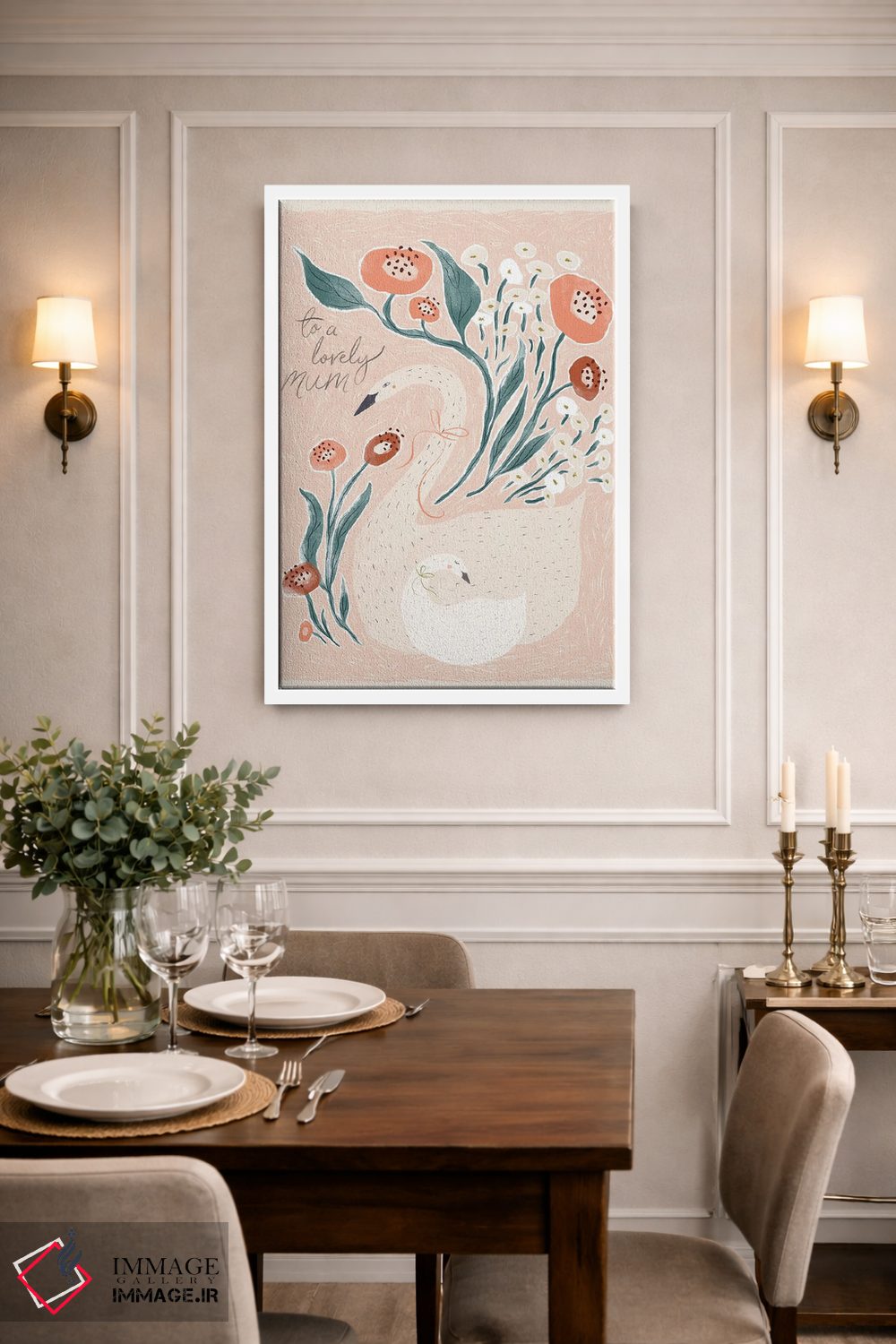 برای دیوارهای ساده، «کارت قو» اثرِ «جیل لابینیک» برای دکورهای مینیمال، یک نقطهٔ توجه میسازد؛ برای خانههایی با چوب و پارچههای گرم انتخابی خوشسلیقه است. در کنار گیاهان و نور طبیعی، جذابتر هم میشود.