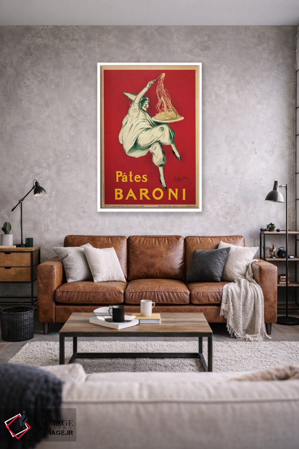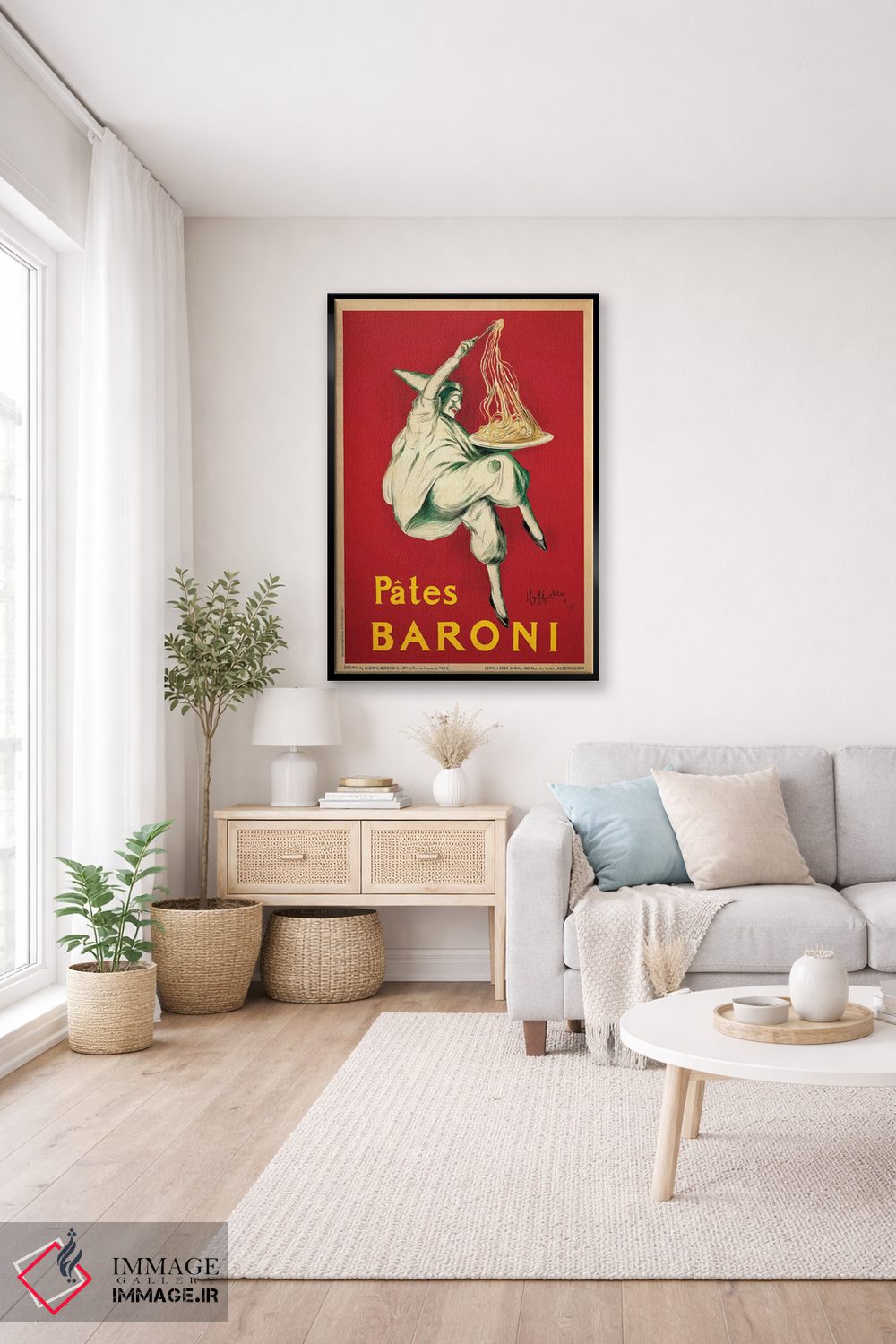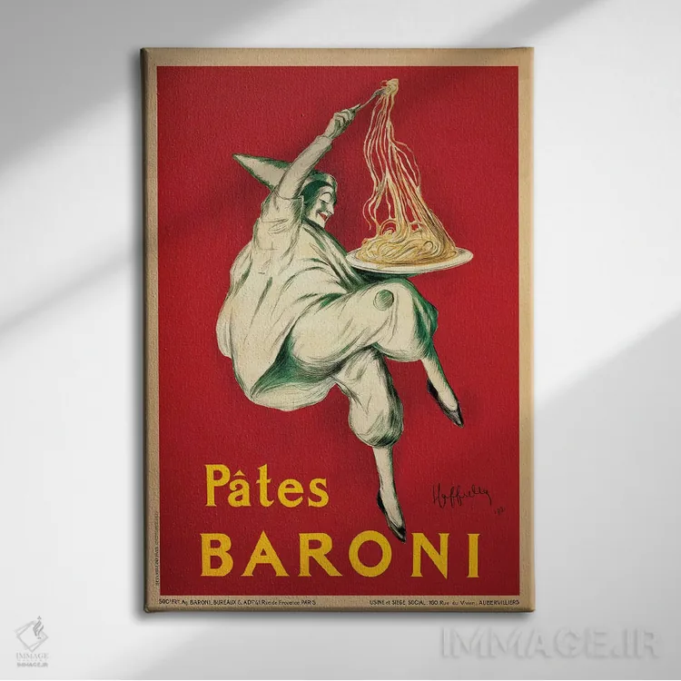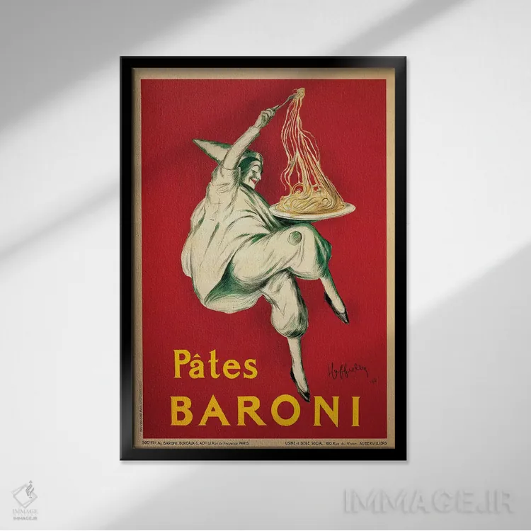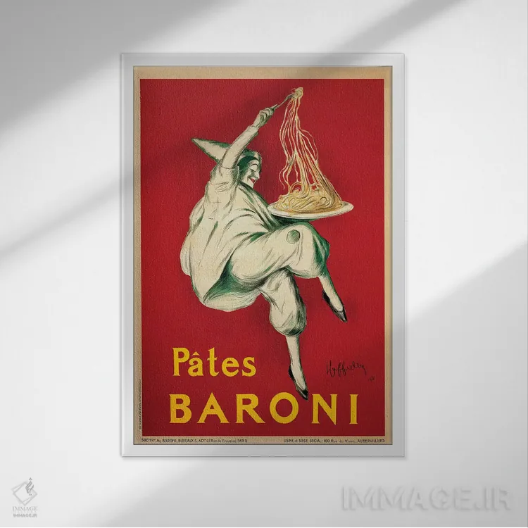 «پاستا بارونی، ۱۹۲۱» اثرِ «لئونتو کاپیلو» یک قاب تایپوگرافیک است که ریتم فضا را منظم نگه میدارد؛ برای دیوارهای سفید و چیدمانهای ساده، گزینهی خوبی است.