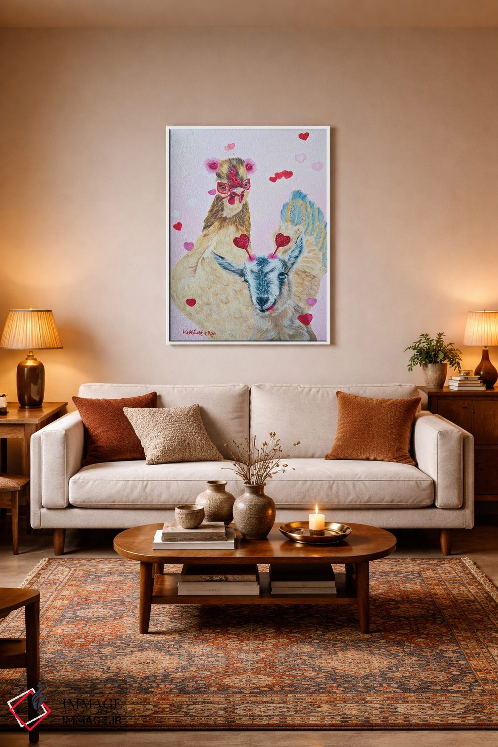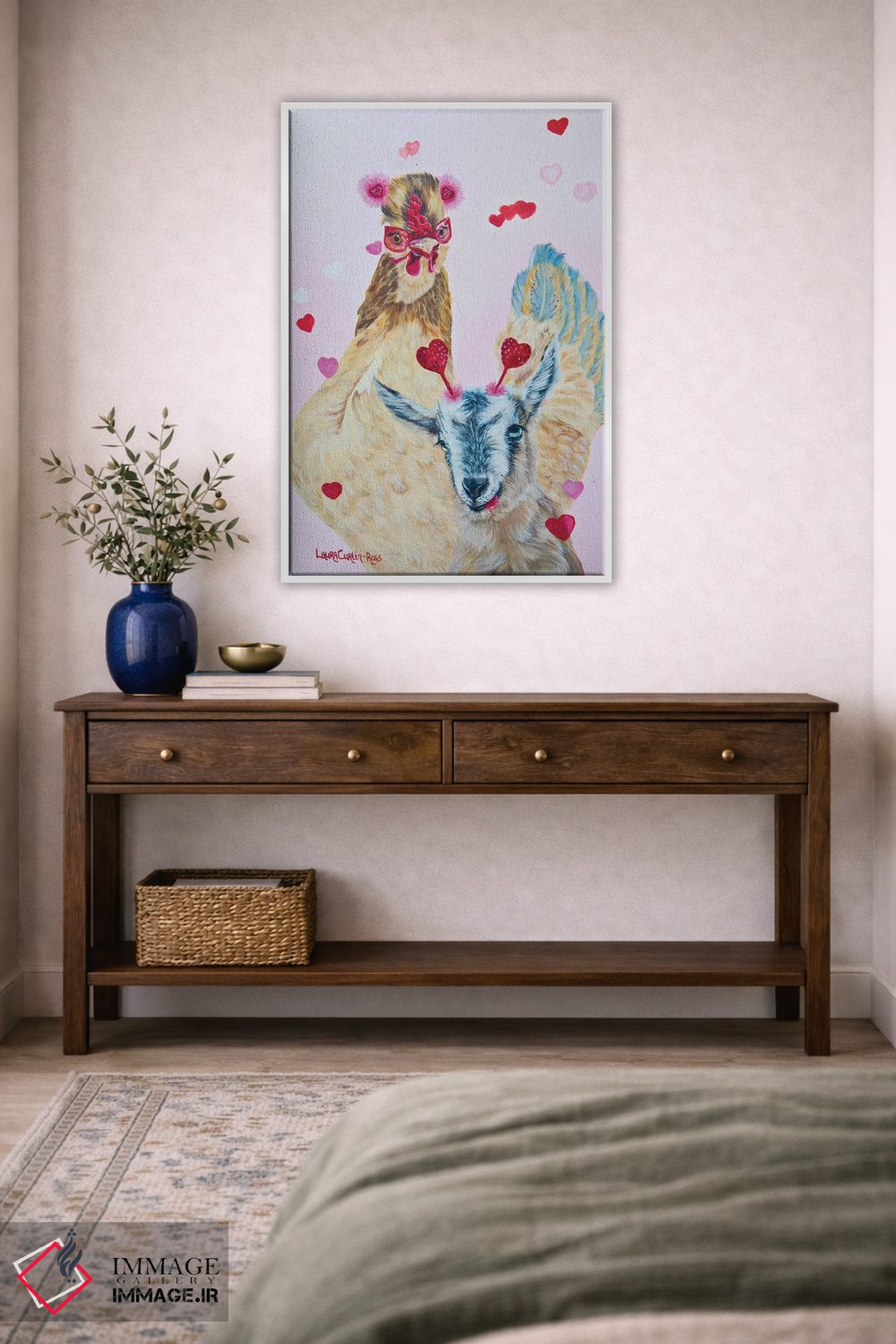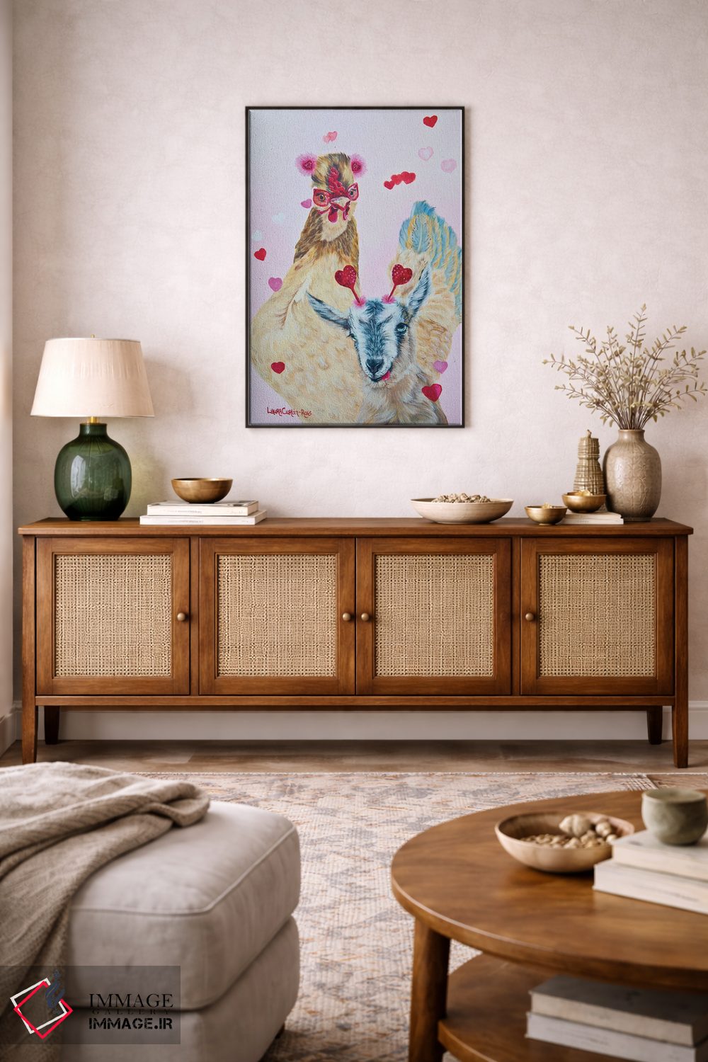 اگر به آثار حیوانات علاقه دارید، «با یک دوست امتحان کن» اثرِ «لورا کرتین» یک لبخند ریز به چیدمان میدهد، برای دکورهایی با رنگهای خنثی گزینهٔ مناسبیست. هر بار نگاهش میکنید، یک جزئیات تازه به چشم میآید.