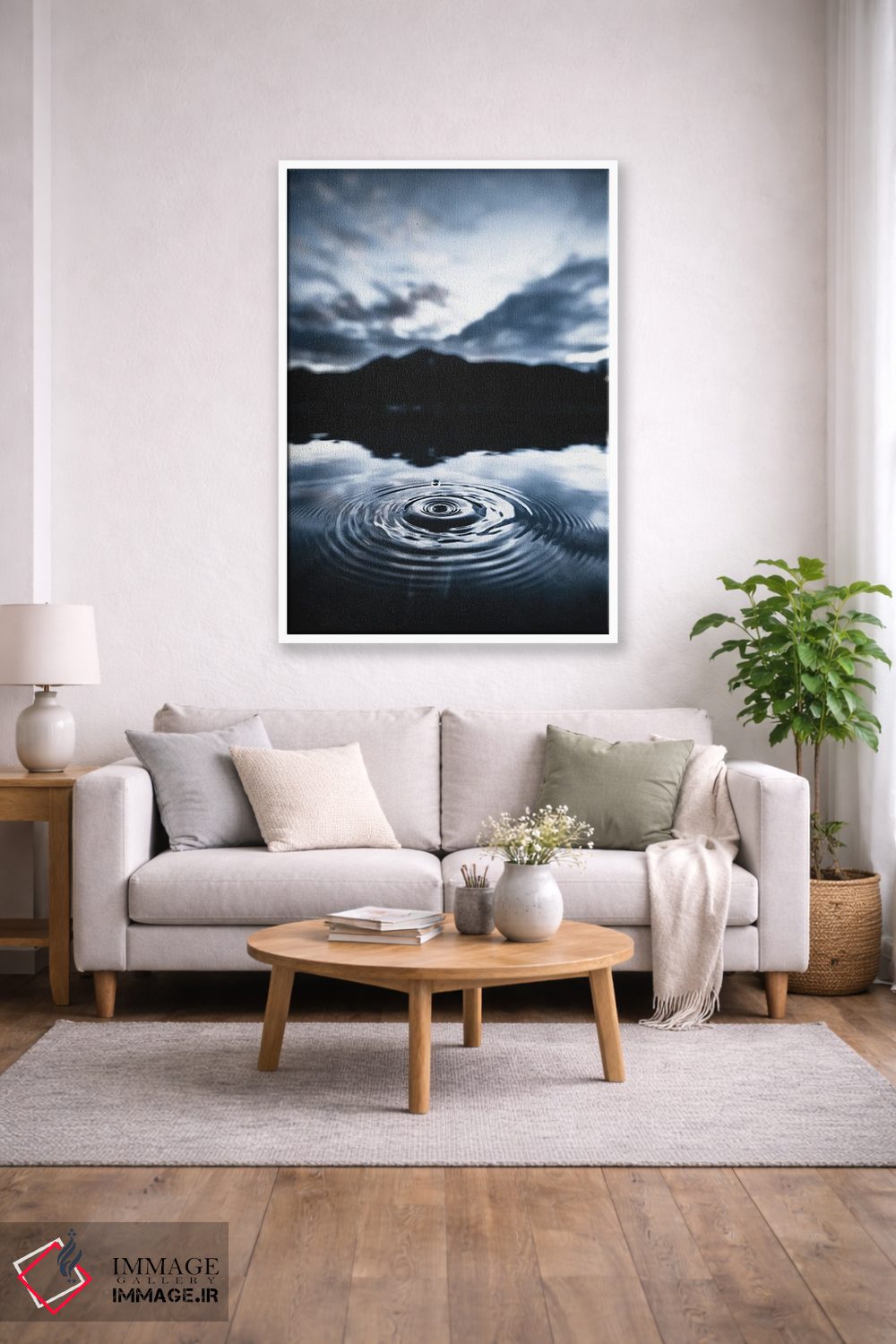 براساس پالت سرد اثر، قاب سفید مات (فریم باریک) پیشنهاد اول است و نقرهای برسخورده (متالیک) مکمل. برای سفارشهای پروژهای با ابعاد و قابهای اختصاصی با ایماژ در تماس باشید.