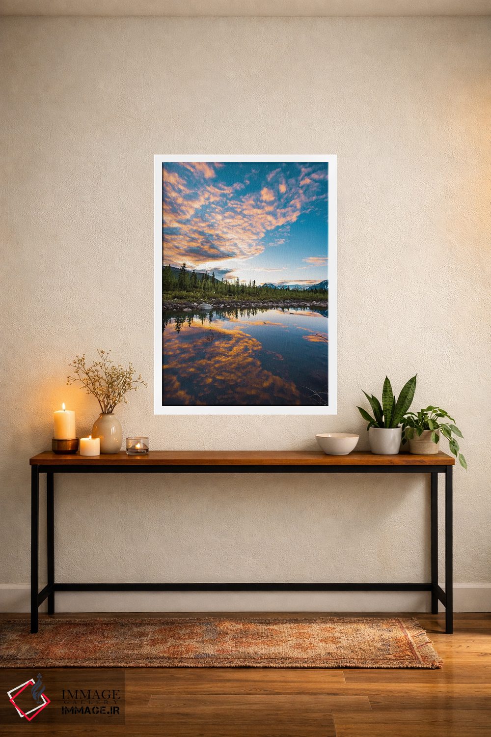 برای دیواری که دوست دارید «حرف داشته باشد»، «غروب آلاسکا» اثرِ «لوکاس مور» در کنار مبلمان، خوشنشین و هماهنگ مینشیند؛ برای راهروها و ورودیهای مینیمال پیشنهاد میشود. اگر دنبال زیباییِ بیادعا هستید، این اثر درست مینشیند.
