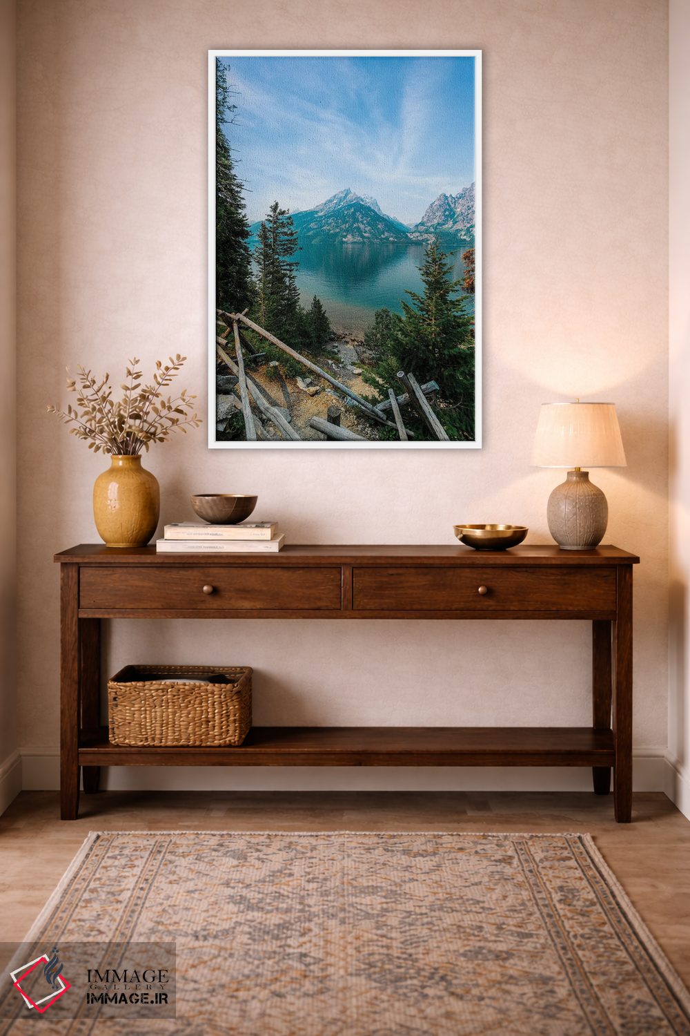 برای دیواری که میخواهید سلیقهتان را آرام و دقیق نشان بدهد، «دریاچه جنی (آمریکا)» اثرِ «لوکاس مور» تضادهای رنگی را خوشقوارهتر میکند؛ برای کافهها و فضاهای عمومی کوچک پیشنهاد میشود. در کنار نورپردازی نقطهای، جلوهاش حرفهایتر میشود.