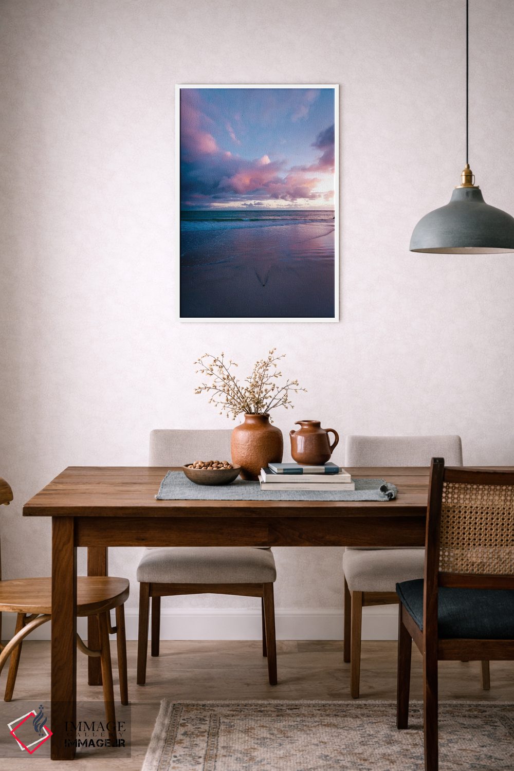 بوم گالری ایماژ طوری طراحی شده که اثر روی دیوار «پرداختشده» و حرفهای دیده شود—نه پرزرقوبرقِ بیپایه؛ بلکه دقیق و خوشپرداخت. با بافت ظریف کنواس، حس اثر هنری را در نگاه نزدیک نگه میدارد و برای فضاهای رسمیتر هم انتخاب مطمئنی است. چاپ جیکلی (Giclée) کمک میکند گرباورهاها را تمیزتر و طبیعیتر نشان میدهد بدون اغراق؛ فقط دقیقتر. حاصل کار، یک تابلو خوشنشین است که هم از دور اثرگذار است و هم از نزدیک خوشخوان؛ اگر فضا مینیمال است، همین پرداخت تمیز کافی است.