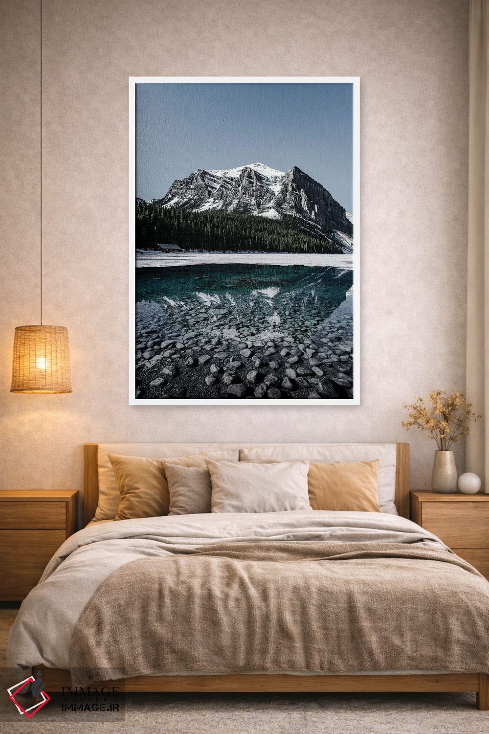 برای سلیقههایی که به جزئیات احترام میگذارند، «انعکاس دریاچه لوئیز» اثرِ «لوکاس مور» فضا را روشنتر و زندهتر نشان میدهد؛ برای فضاهای مدرن با خطوط ساده پیشنهاد میشود. در کنار نورپردازی نقطهای، جلوهاش حرفهایتر میشود.