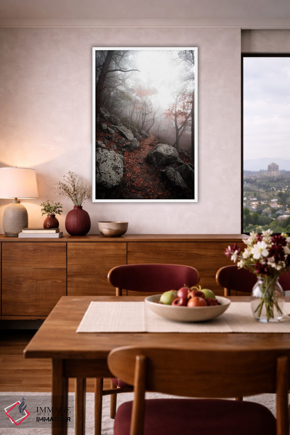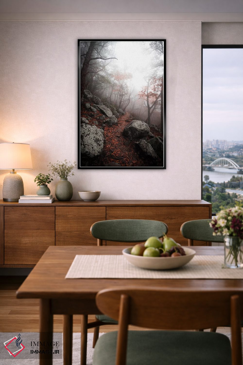 براساس پالت گرم اثر، قاب تیک گرم (چوبی) پیشنهاد اول است و مشکی مات (فریم متوسط) مکمل. برای سفارشهای پروژهای با ابعاد و قابهای اختصاصی با ایماژ در تماس باشید.