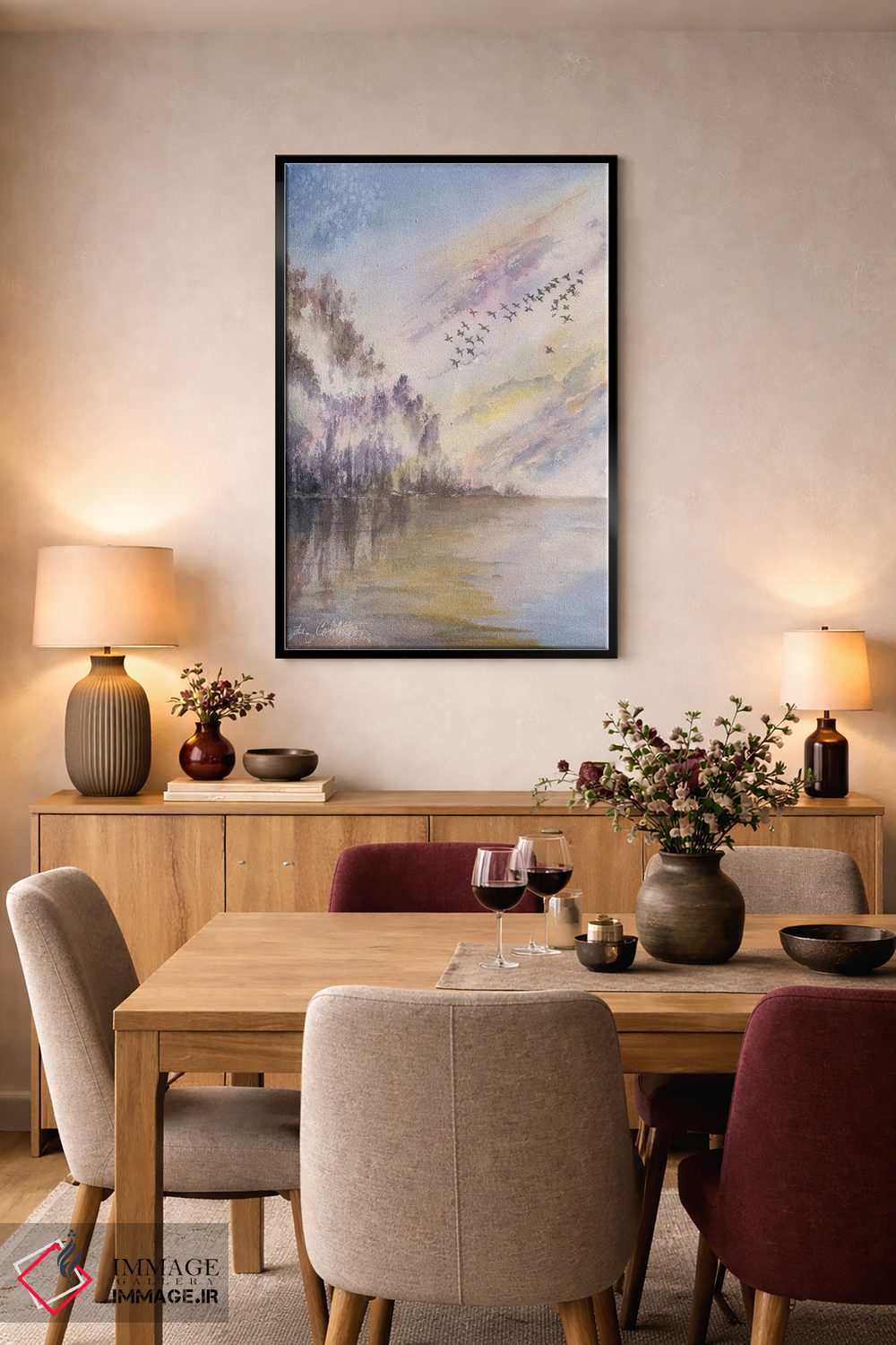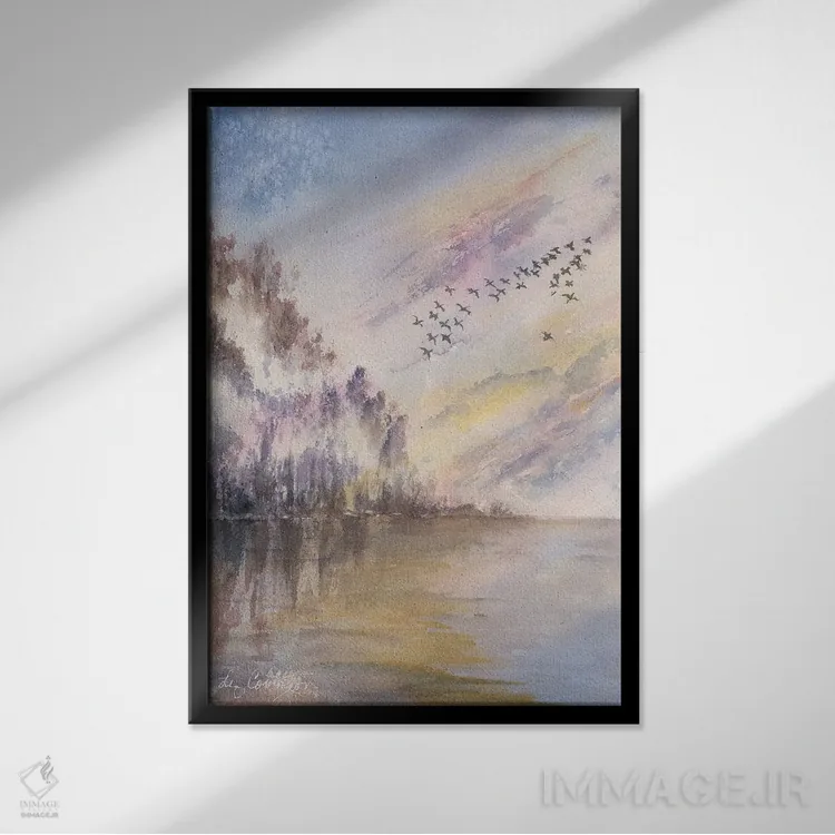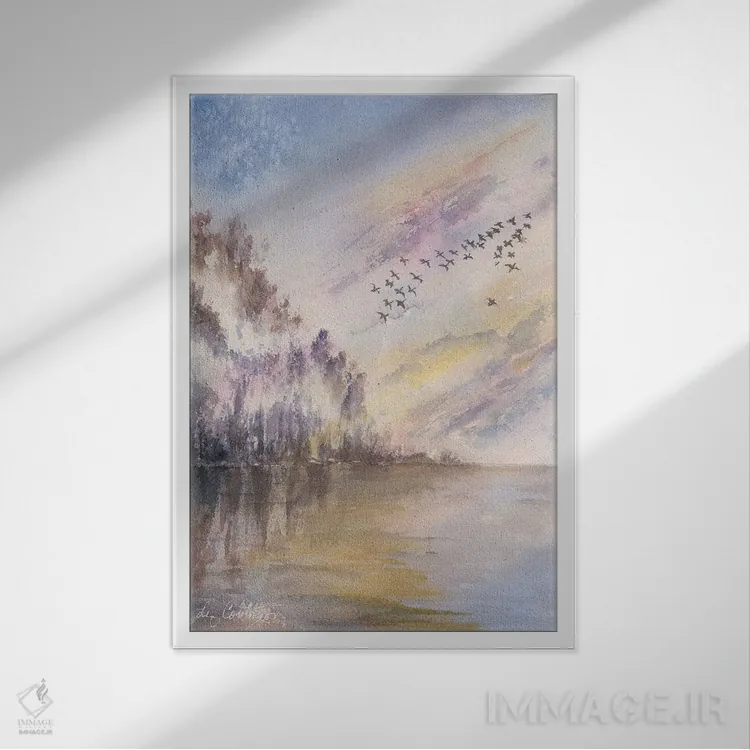 براساس پالت گرم اثر، قاب بلوط روشن (چوبی) پیشنهاد اول است و استخوانی ملایم مکمل. برای سفارشهای پروژهای با ابعاد و قابهای اختصاصی با ایماژ در تماس باشید.