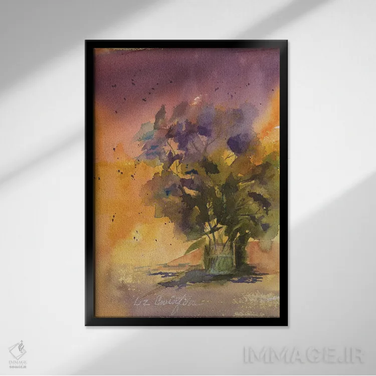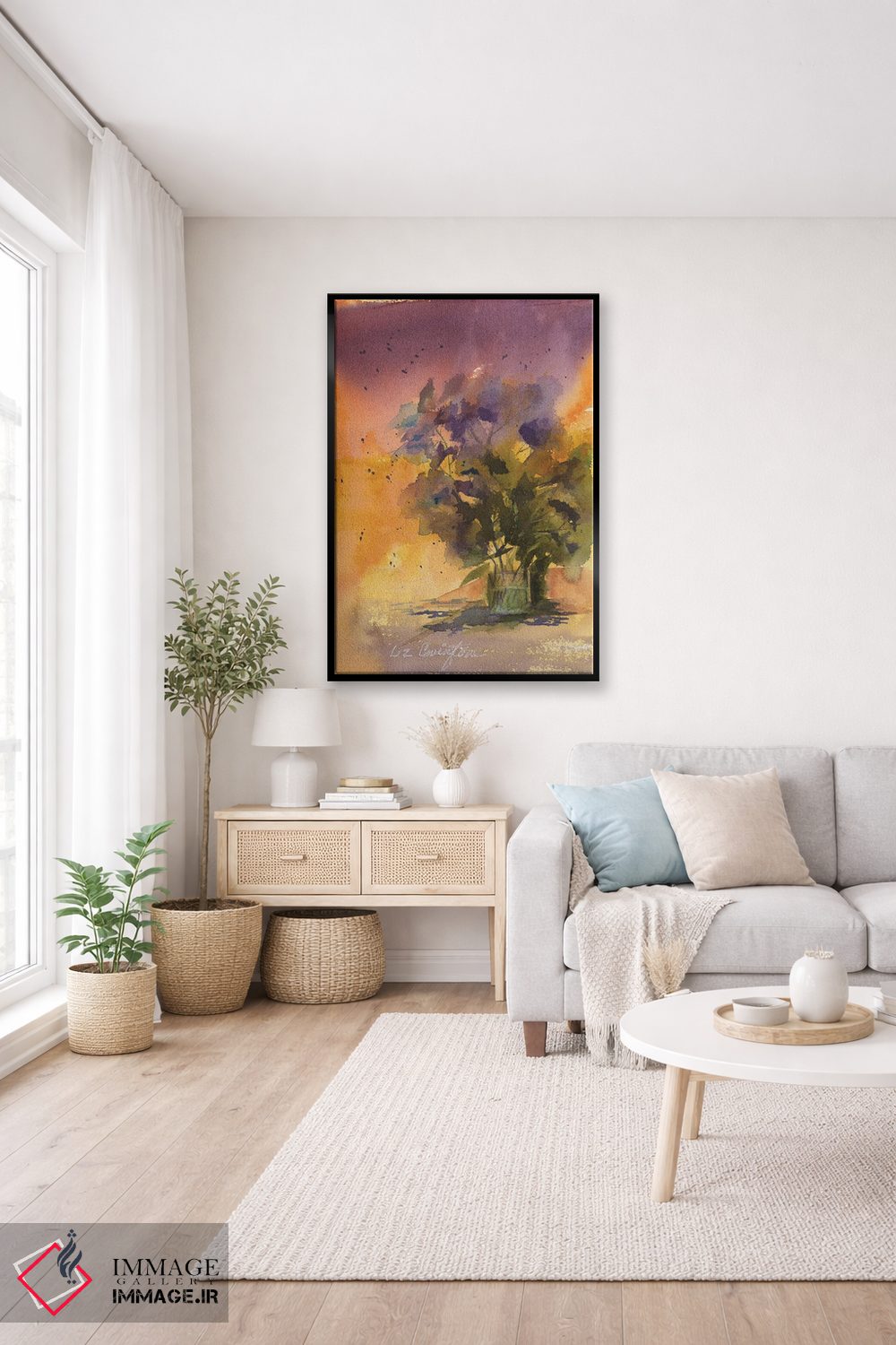 اگر به دکورهای طبیعی علاقه دارید، «بنفشهها» اثرِ «لیز کاوینگتون» به دیوار، روشناییِ ملایم و دلنشین میدهد، برای نشیمنهای روشن گزینهٔ مناسبیست. با قاب روشن یا چوبی، حس طبیعیتری پیدا میکند.