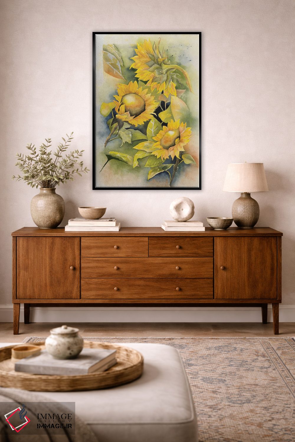 در «گلهای آفتابگردان» اثرِ «لیز کاوینگتون»، گلها و گیاهان چیدمان را از خشکی بیرون میآورد؛ برای راهروهای مینیمال انتخابی خوشسلیقه است. همیشه بهروز میماند و با فصلها خوب کنار میآید.