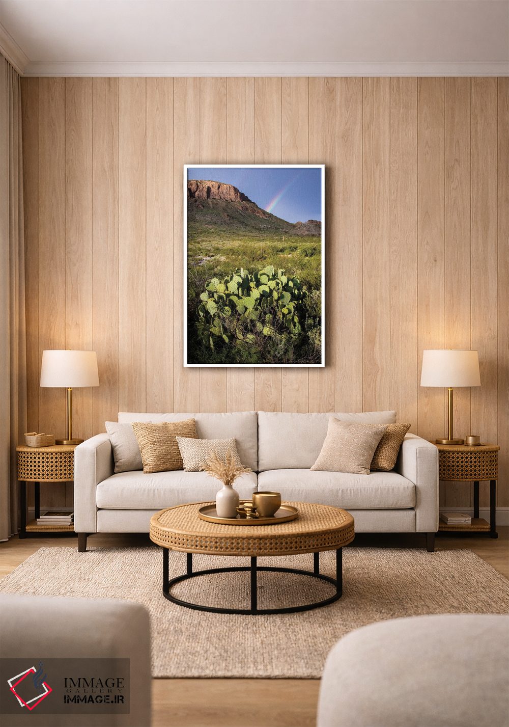 بوم گالری ایماژ نسخهی چیدماناتیوِ حرفهای از یک اثر هنری است؛ روی کنواس سفیدِ یکدست و بدون اسید با اجرای چاپ هنری جیکلی (Giclée) برای آرتپرینتهای جدی با سیستم رنگ Epson UltraChrome HDR برای نیمسایههای نرمتر و سایههای جزئیتر؛ روی دیوار، کار یکدستتر و خوشکیفیتتر دیده میشود.