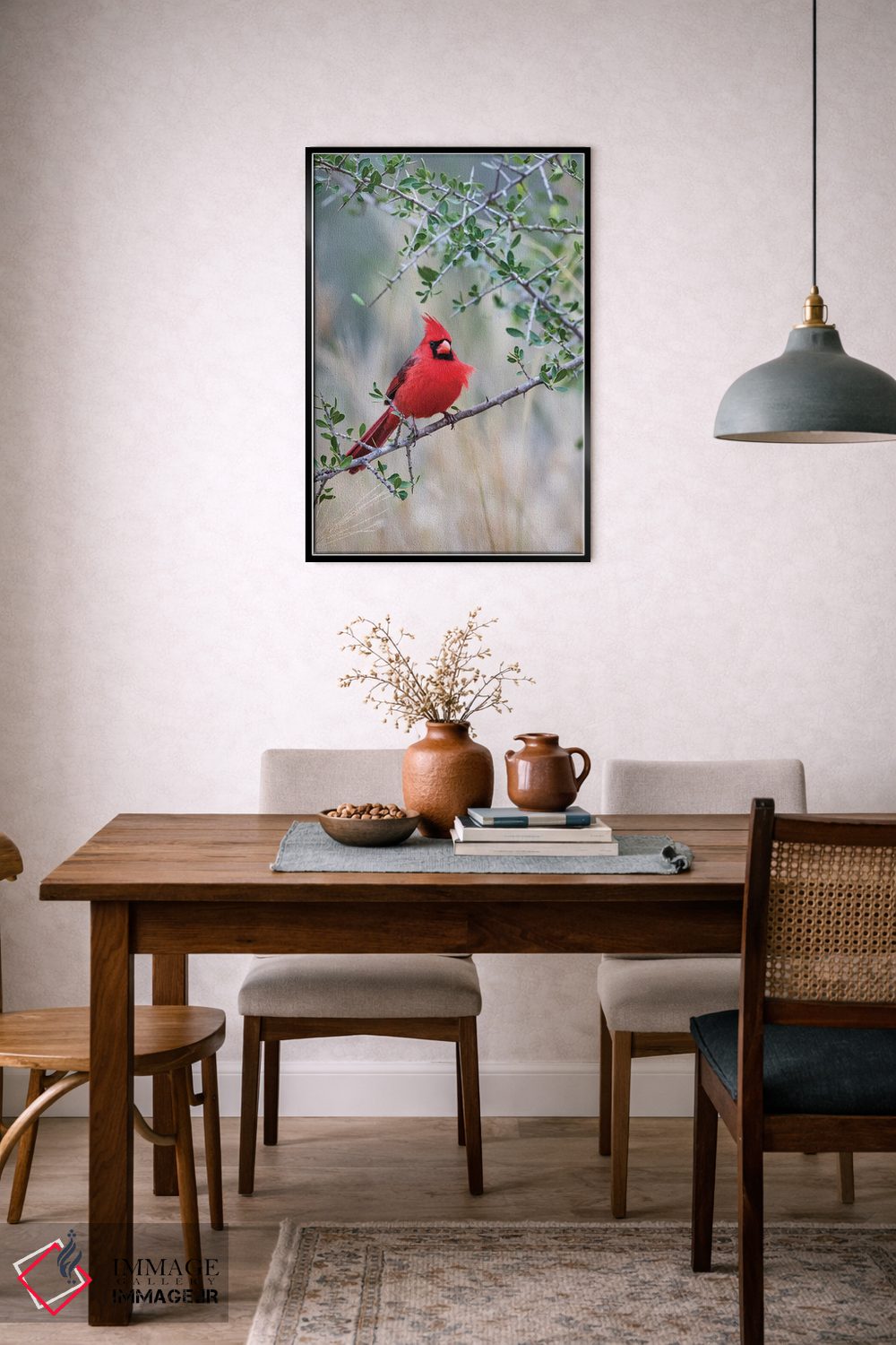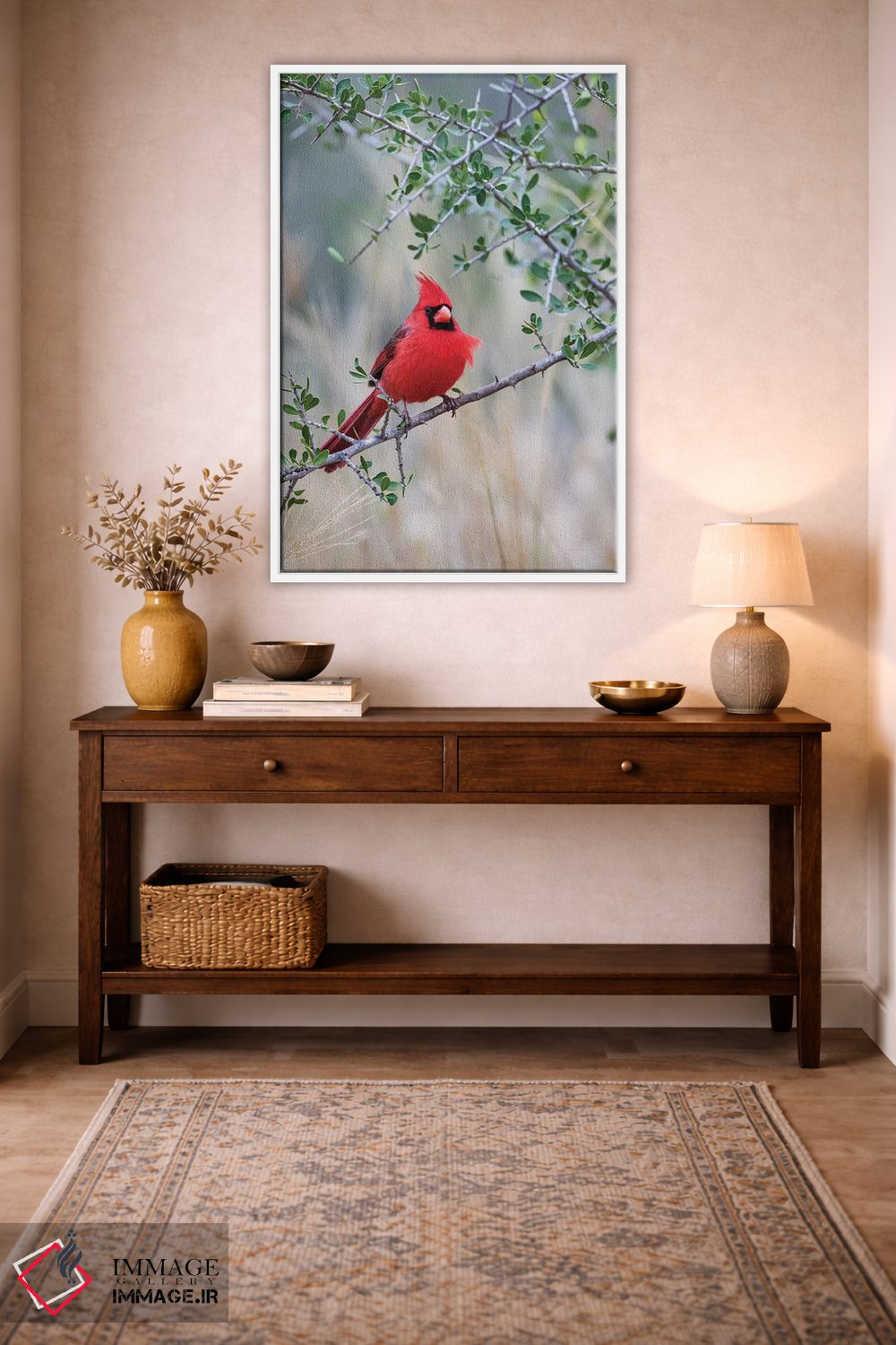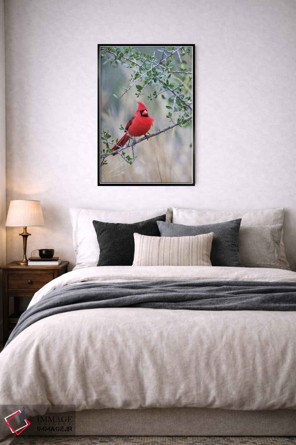 برای اتاقی که به یک عنصر دوستداشتنی نیاز دارد، «کارباورال شمالی نشسته» اثرِ «لری دیتو» بافت و جزئیات را طوری نشان میدهد که نگاه میماند؛ برای اتاق کودک (بدون لحن کودکانه) انتخابی خوشسلیقه است. با نورپردازی نقطهای، جذابتر هم میشود.