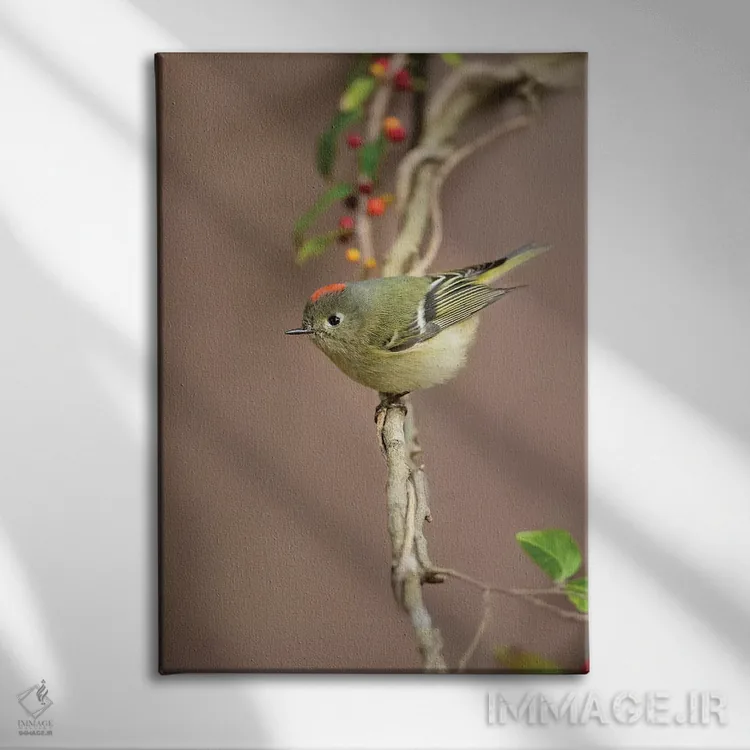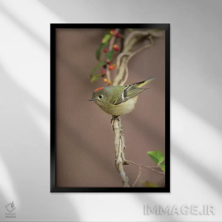 تابلو دکوراتیو کینگلت تاج سرخ نشسته اثر لری دیتو
