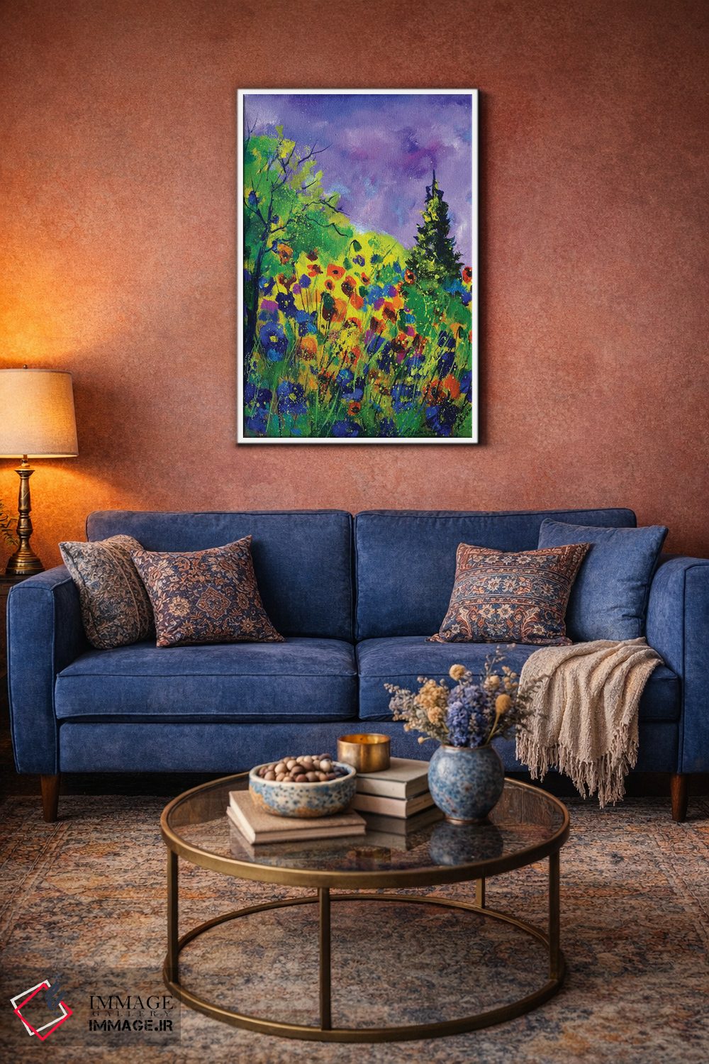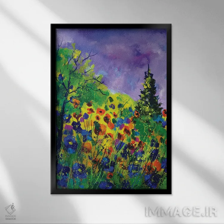 براساس پالت ترکیبی اثر، قاب تیک گرم (چوبی) پیشنهاد اول است و مشکی مات (فریم متوسط) مکمل. برای سفارشهای پروژهای با ابعاد و قابهای اختصاصی با ایماژ در تماس باشید.