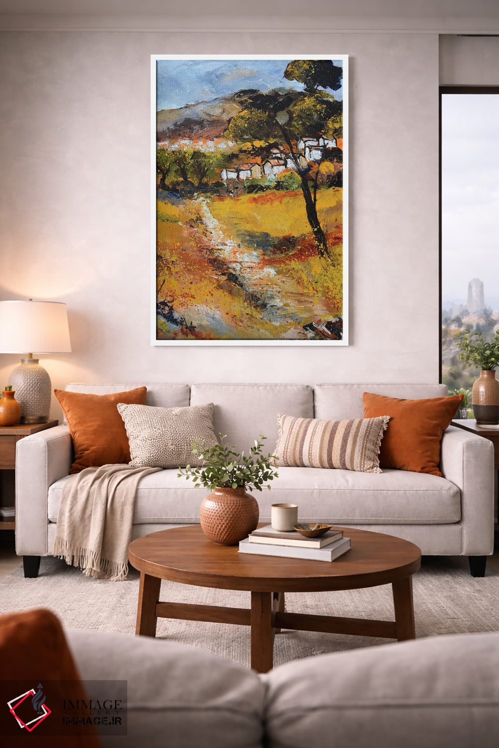براساس پالت گرم اثر، قاب تیک گرم (چوبی) پیشنهاد اول است و مشکی مات (فریم متوسط) مکمل. برای سفارشهای پروژهای با ابعاد و قابهای اختصاصی با ایماژ در تماس باشید.