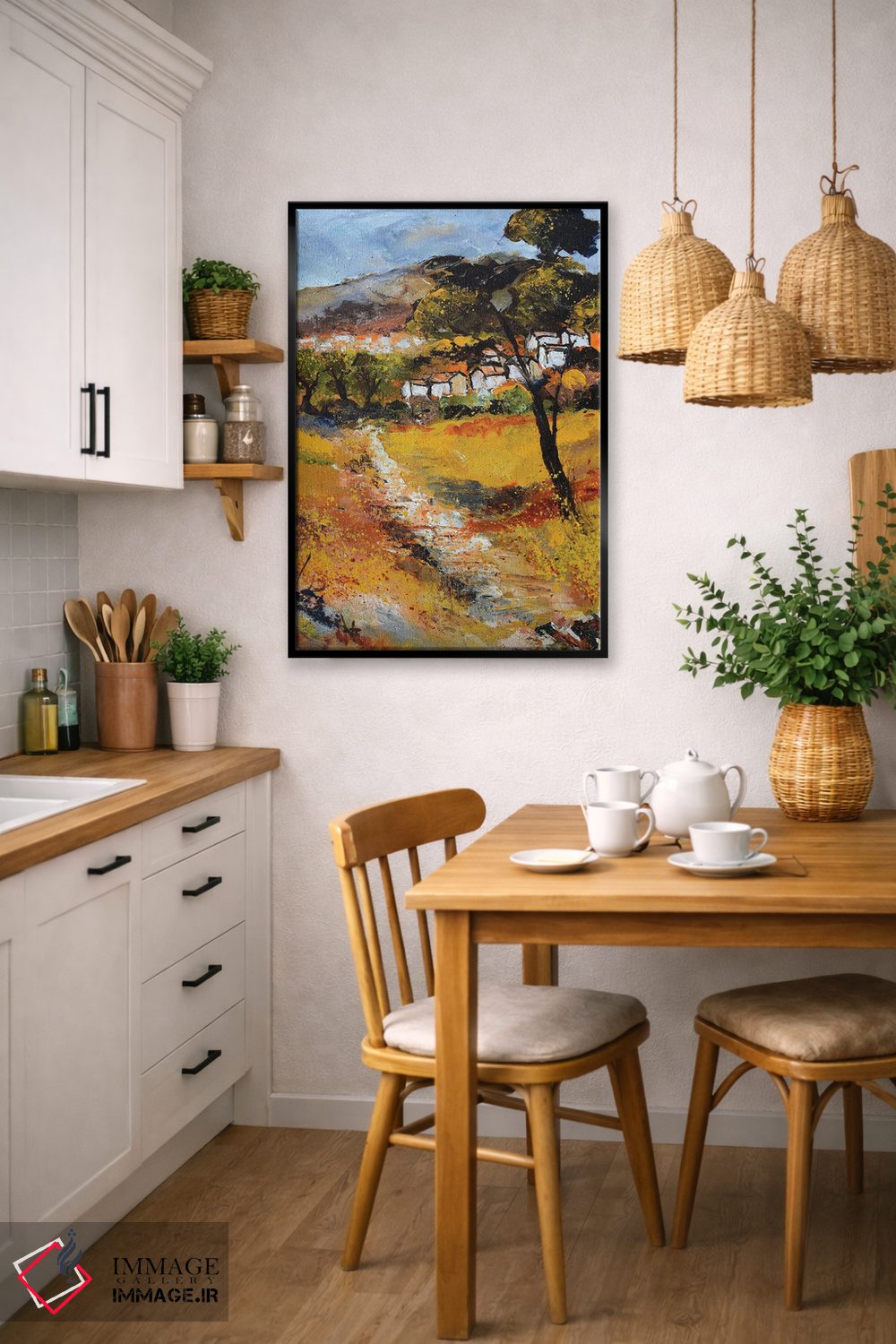 «روستای کوچک در پروانس» اثرِ «پل لدنت» در فضای هنری، بیشتر از روایت مستقیم، روی حس و فرم تکیه دارد؛ مناسب برای دکورهای مدرن.