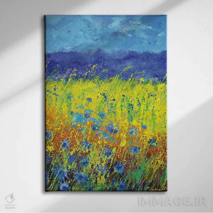 تابلو دکوراتیو گل های گندم نمای آبی اثر پل لدنت