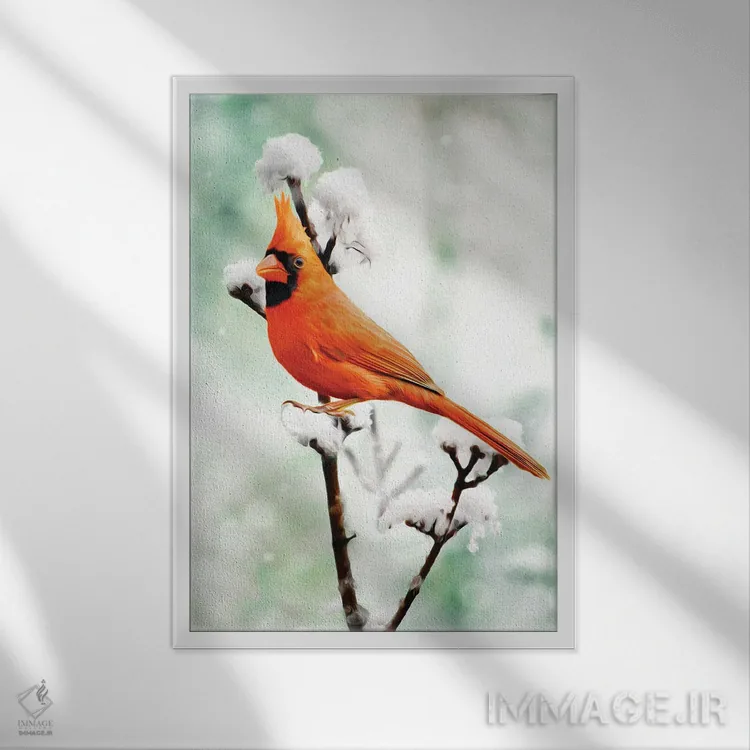 «کارباورال شمالی بر شاخه برفی» اثرِ «لورا دی یانگ» میتواند در کنار رنگهای خنثی، تضاد دلچسبی بسازد؛ برای دکورهایی با رنگهای خنثی پیشنهاد میشود. با قاب چوبی یا مشکی، حس مرتبتری پیدا میکند.