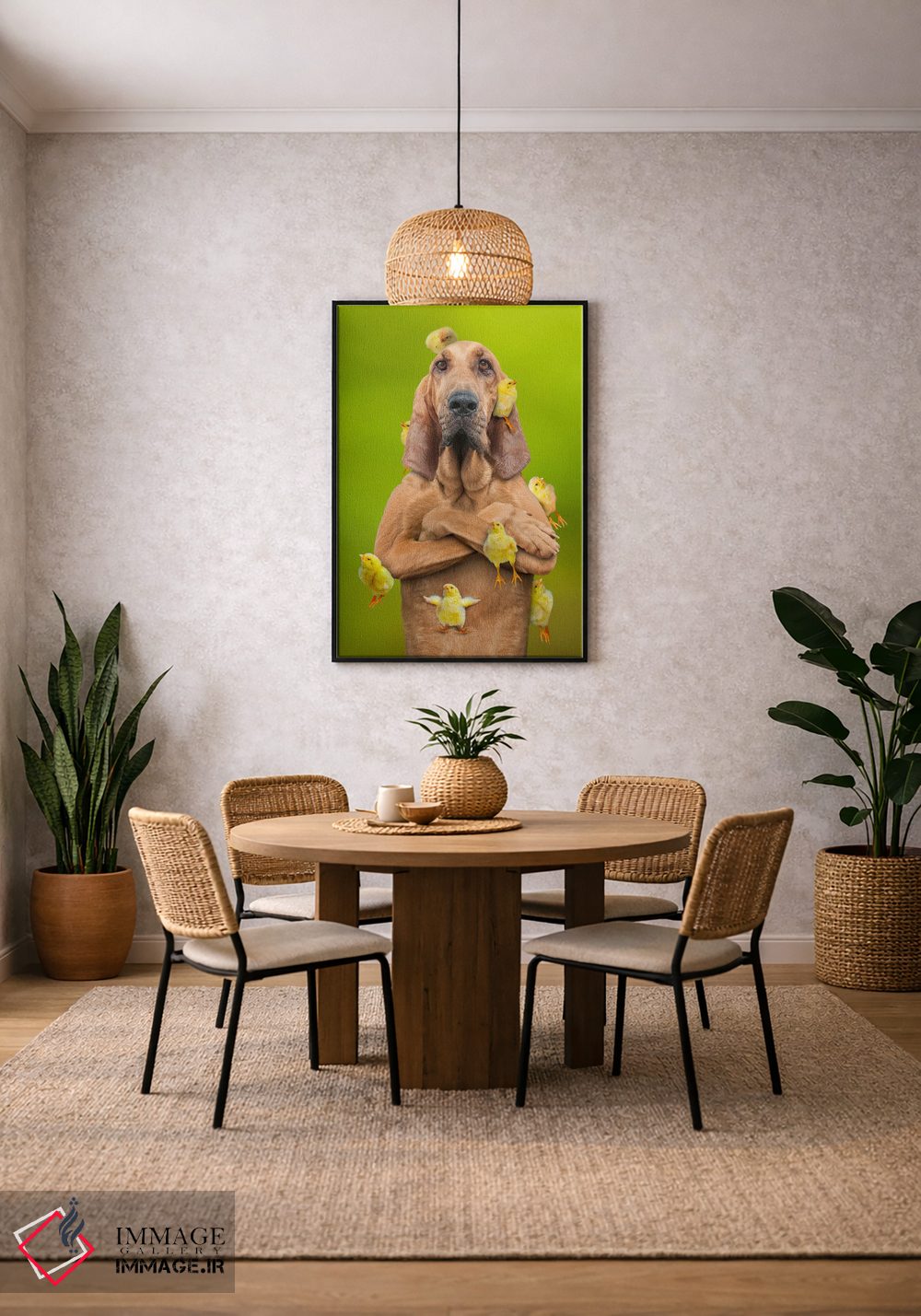 این اثر با عنوان «جذاب برای جوجهها (دختران)» اثرِ «لوند روزر» به فضا، گرمیِ ملایم اضافه میکند؛ برای اتاق کودک (بدون لحن کودکانه) انتخابی خوشسلیقه است. با قاب چوبی یا مشکی، حس مرتبتری پیدا میکند.