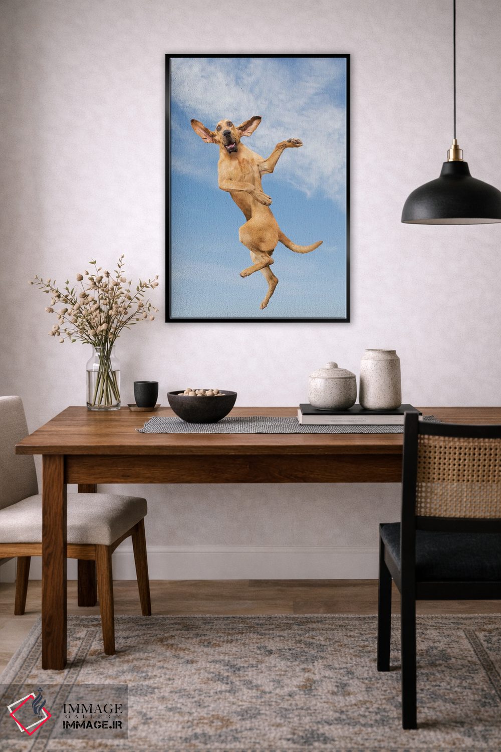«سگ پرنده (در حال پریدن)» اثرِ «لوند روزر» میتواند بافت و جزئیات را طوری نشان بدهد که نگاه میماند؛ برای خانههایی با چوب و پارچههای گرم پیشنهاد میشود. هم فضا را گرم میکند، هم شلوغش نمیکند.