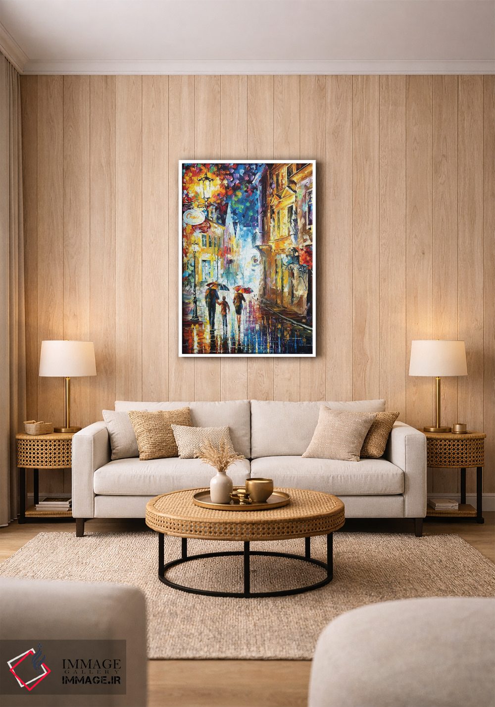 تابلو دکوراتیو خانواده زیر باران اثر لئونید آفرموف