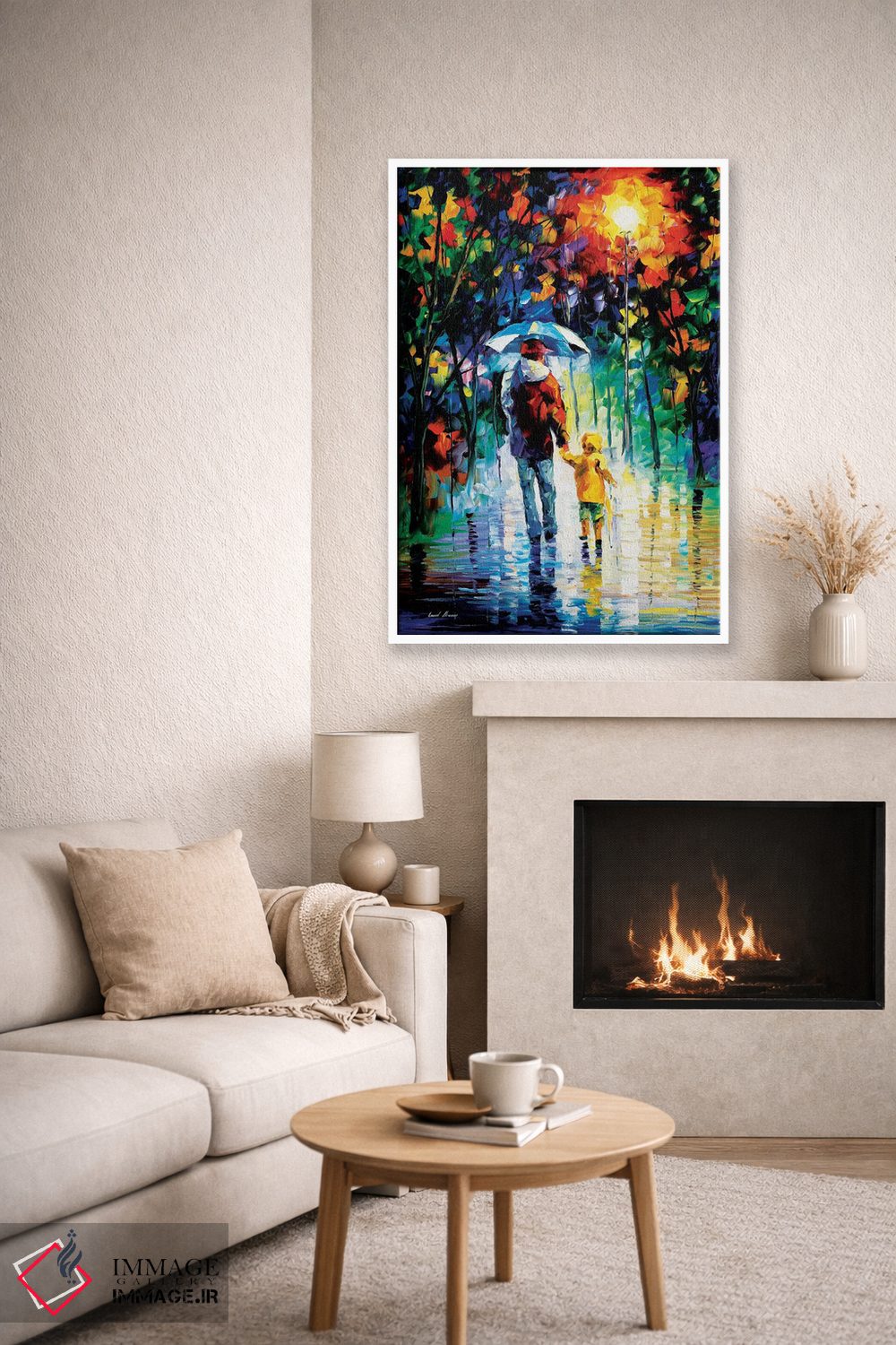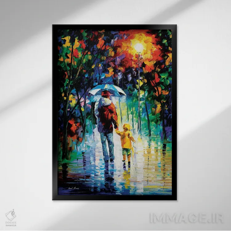 تابلو دکوراتیو پیاده روی بارانی با پدر اثر لئونید آفرموف