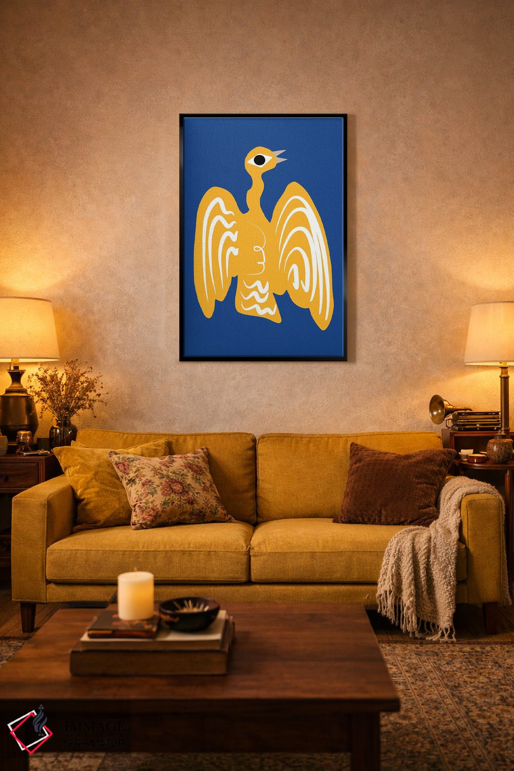 این اثر با عنوان «تصویر غاز طلایی» اثرِ «لیتل باور (نام هنری)» در کنار رنگهای خنثی، تضاد دلچسبی میسازد؛ برای دیوار کنار میز کار انتخابی خوشسلیقه است. در کنار گیاهان و نور طبیعی، جذابتر هم میشود.