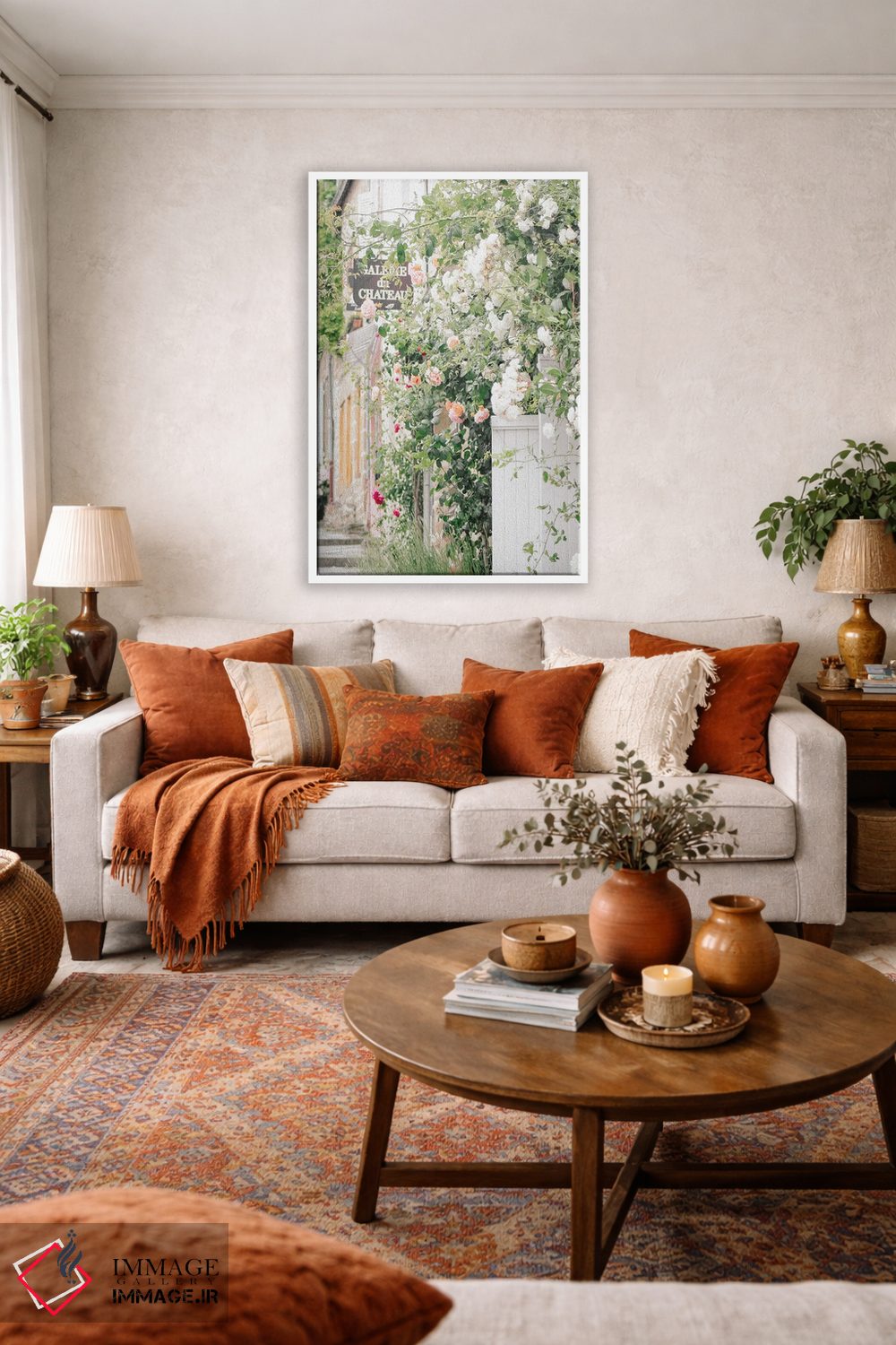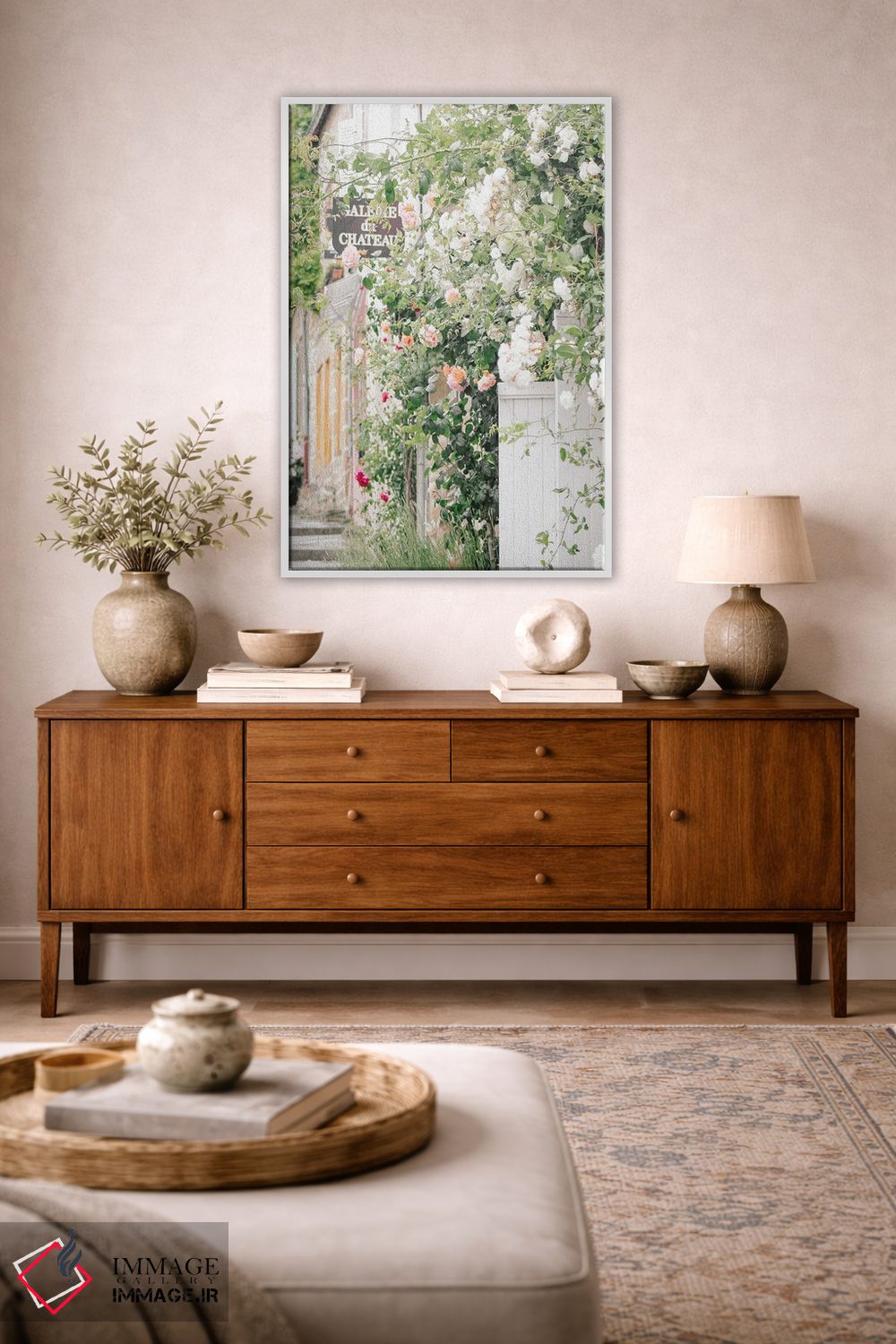 اگر میخواهید اثر برجستهتر شود، کرم را در گلدان یا آباژور برگردانید تا ترکیببندی قویتر شود. انتخاب قاب هم میتواند بهخوبی این اکسنت را تقویت کند.