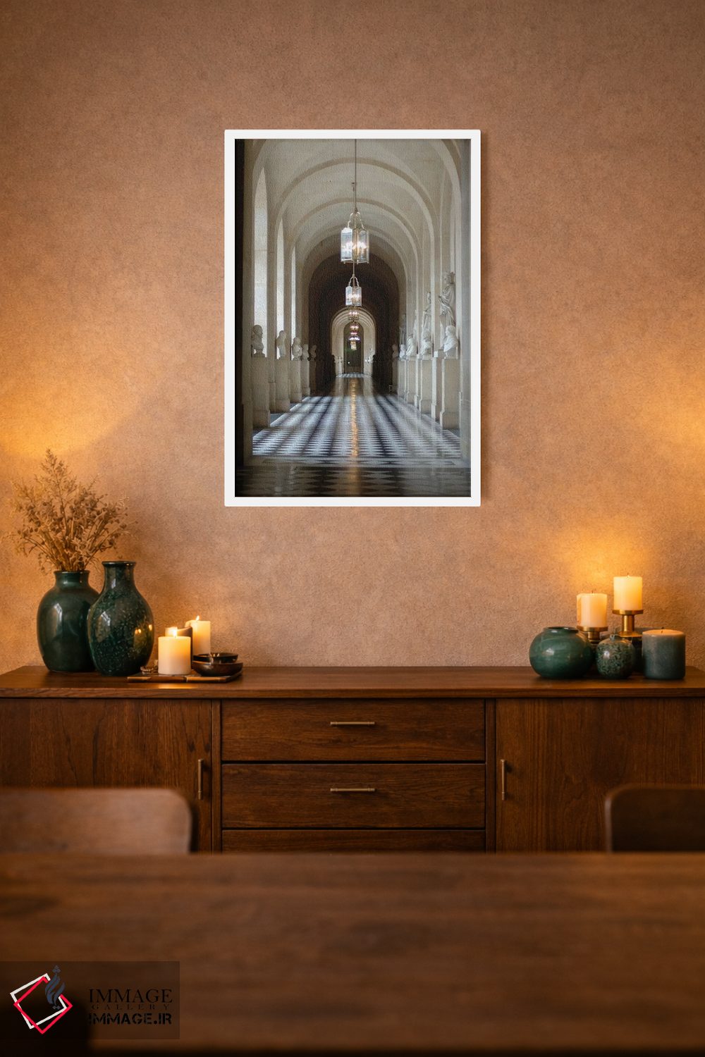 برای دیواری که دوست دارید «حرف داشته باشد»، «Palace Of Versailles، Ile—de—France، France، راهروی مجسمهها، کاخ ورسای، ایل—دو—فرانس، فرانسه» اثرِ «لیزا اس. انگلبریخت» به دیوار، شخصیت و جهت میدهد؛ برای فضاهایی که میخواهید مرکز توجه داشته باشند پیشنهاد میشود. با نور گرم یا سرد، خوانایی و وقارش را حفظ میکند.