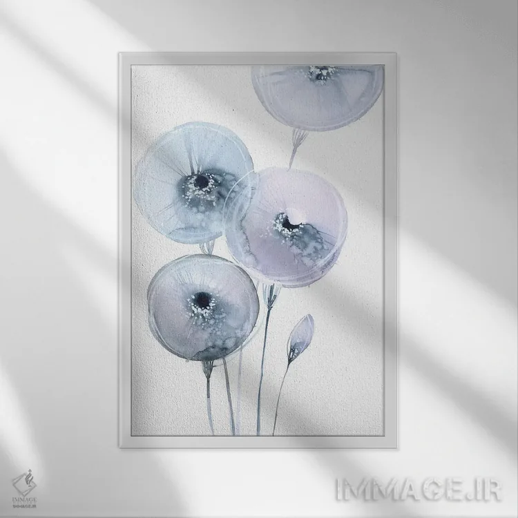 براساس پالت سرد اثر، قاب سفید مات (فریم باریک) پیشنهاد اول است و نقرهای برسخورده (متالیک) مکمل. برای سفارشهای پروژهای با ابعاد و قابهای اختصاصی با ایماژ در تماس باشید.