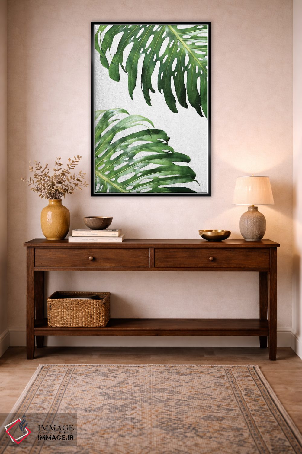 «فیلودندرون دوتایی (گیاه آپارتمانی)» اثرِ «لکسی گر ایر» با حالوهوای این اثر و لحن پرداختِ هنری، فضا را تازهتر و روشنتر نشان میدهد.